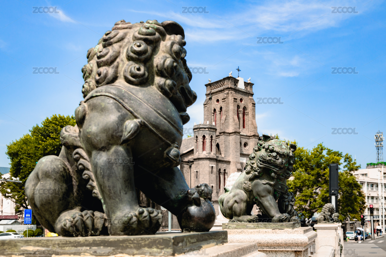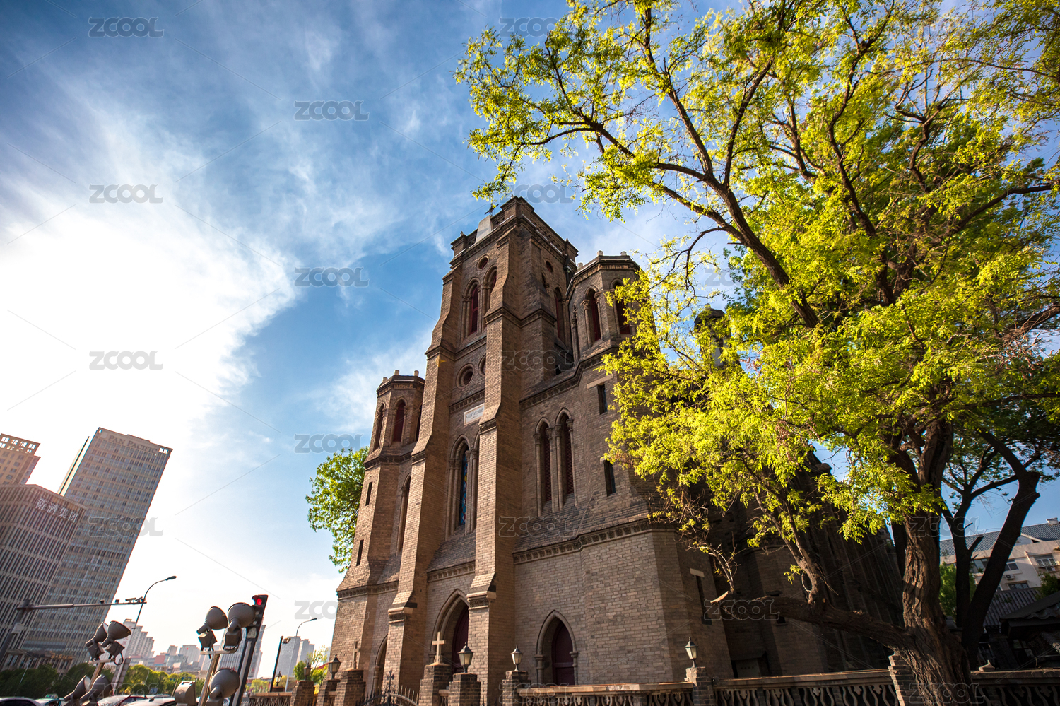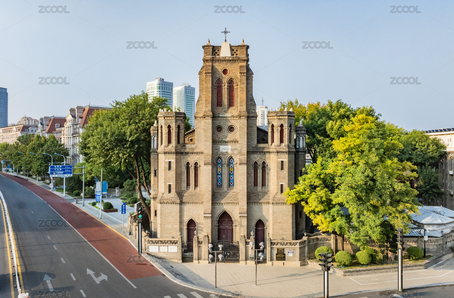 美麗的天津望海樓教堂城市風(fēng)光
