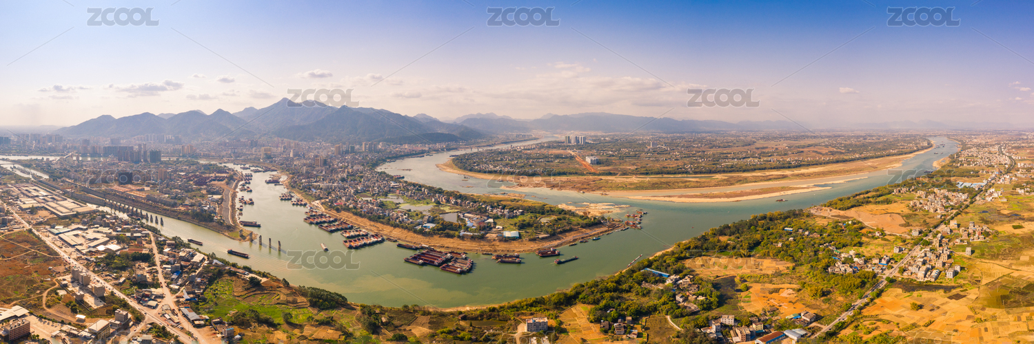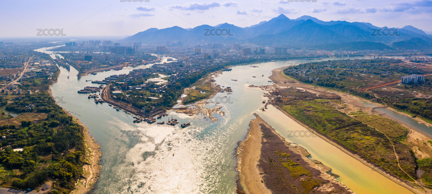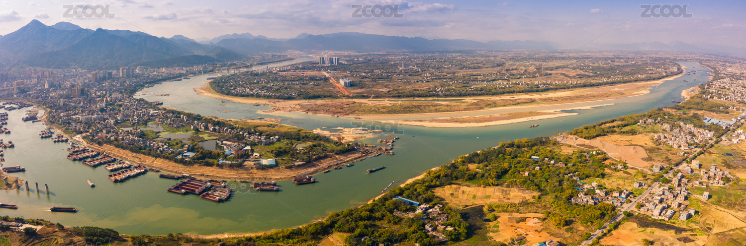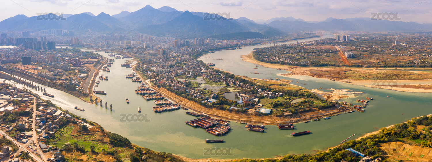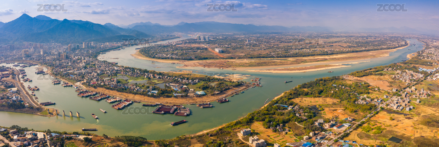 航拍中國廣西桂平市三江口航道