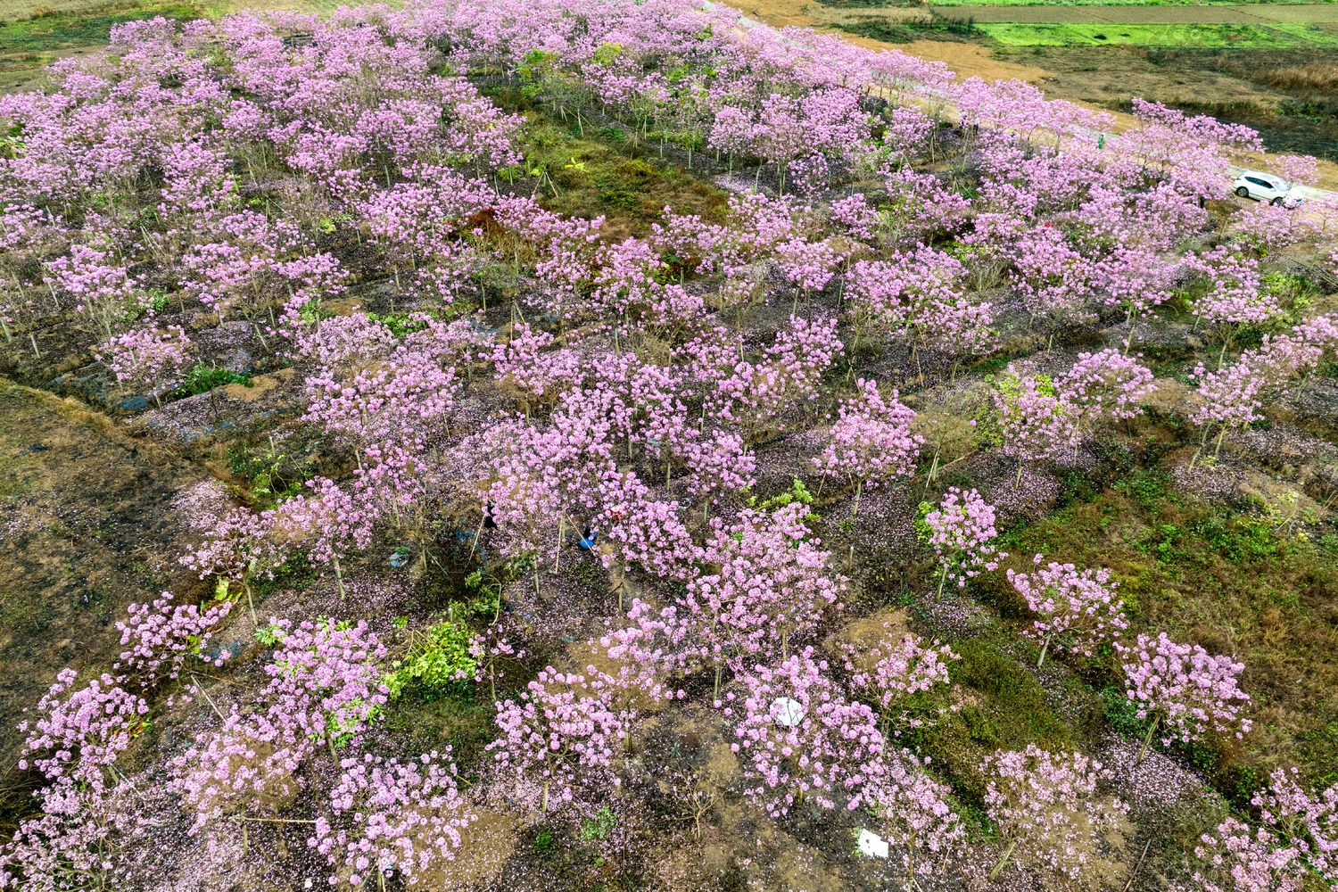 中國廣西貴港桂平鄉(xiāng)村紫色風(fēng)鈴花開