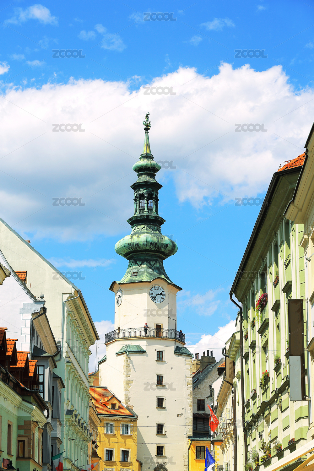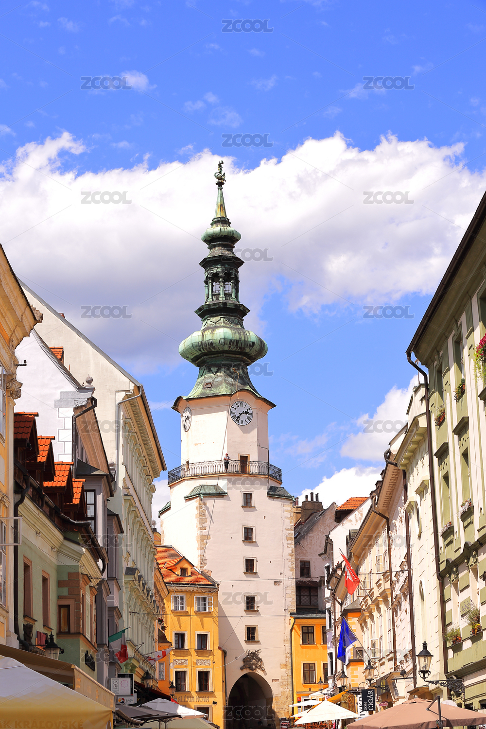 斯洛伐克共和國(guó)首都布拉迪斯拉發(fā)市老城圣米歇爾門(mén)的尖頂建筑