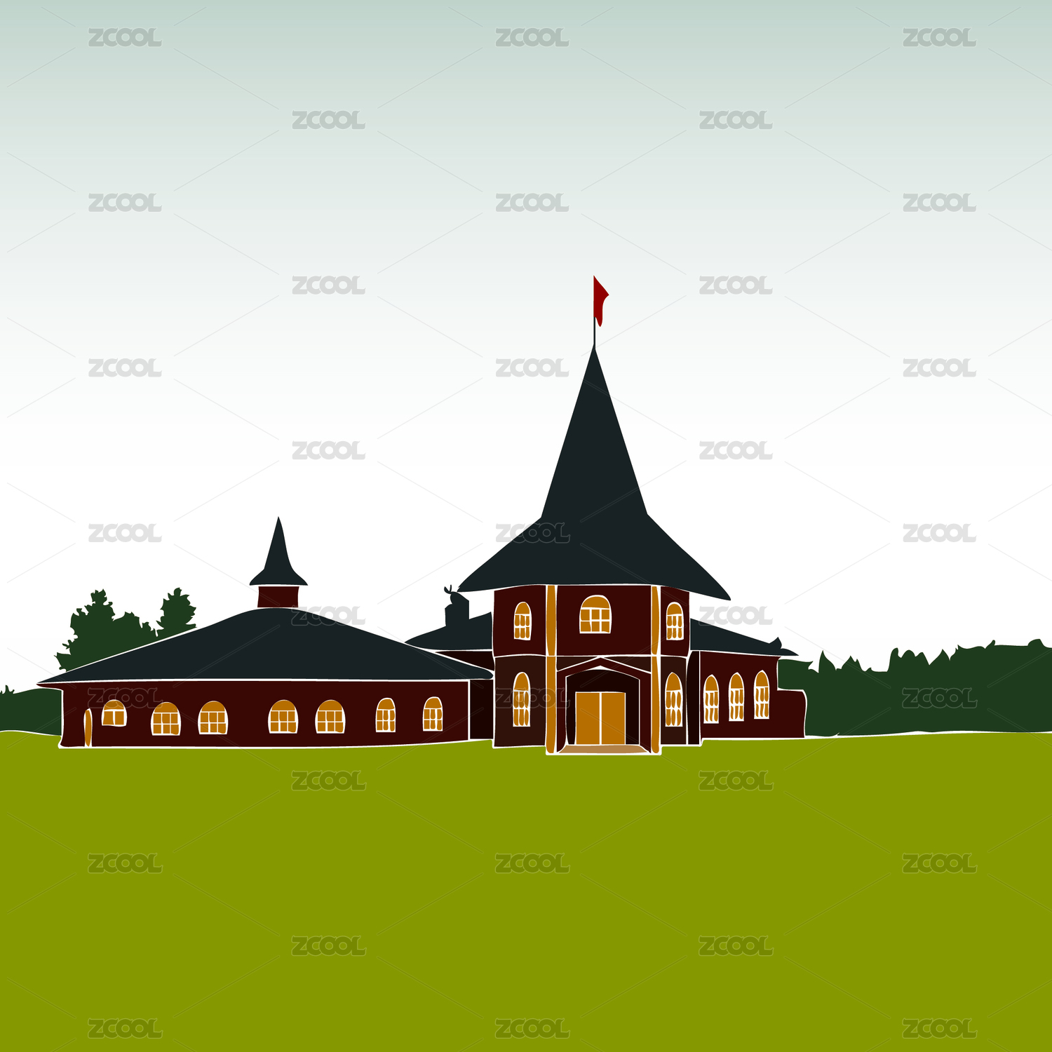 芬蘭北極村 尖頂建筑矢量插畫(huà)風(fēng)景
