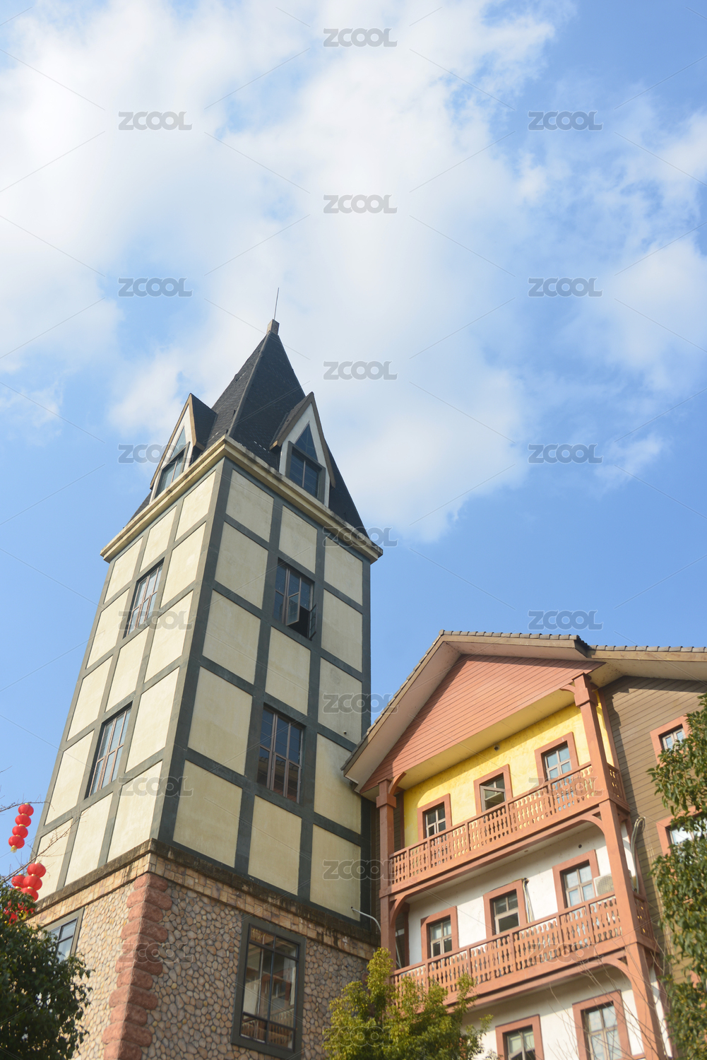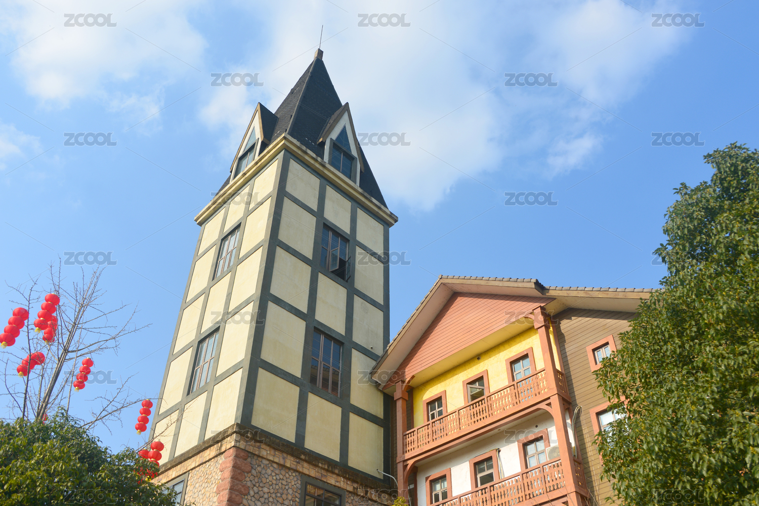 折射出成都金堂科瑪小鎮(zhèn)西式尖頂建筑