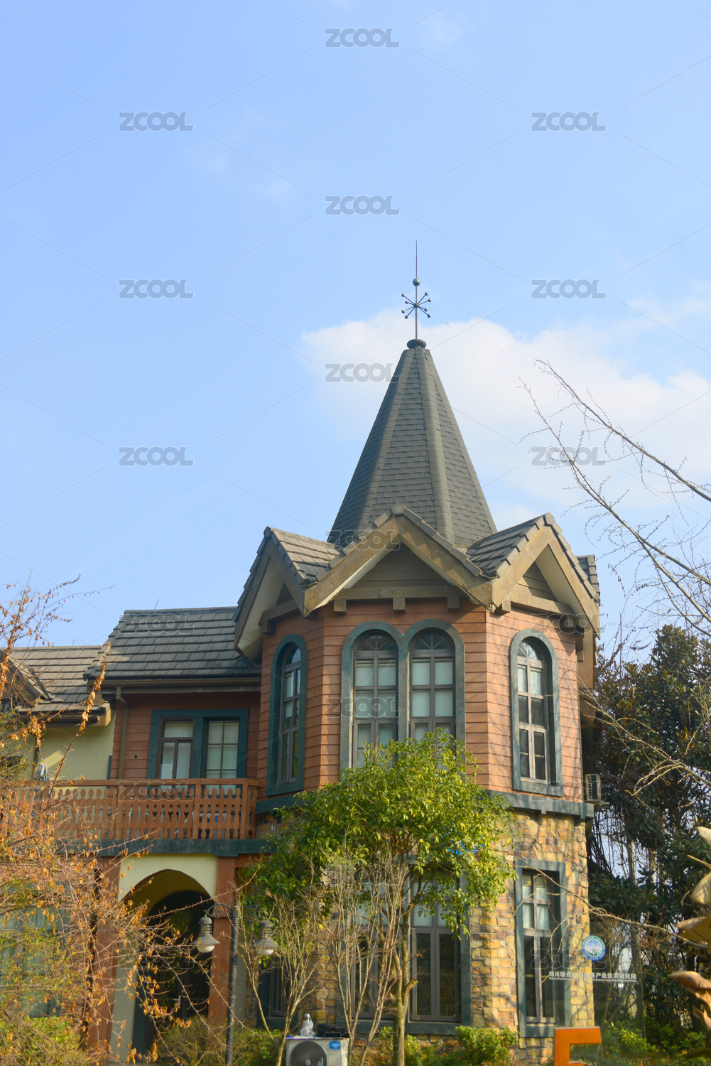現(xiàn)代尖頂園林建筑房屋設(shè)計(jì)