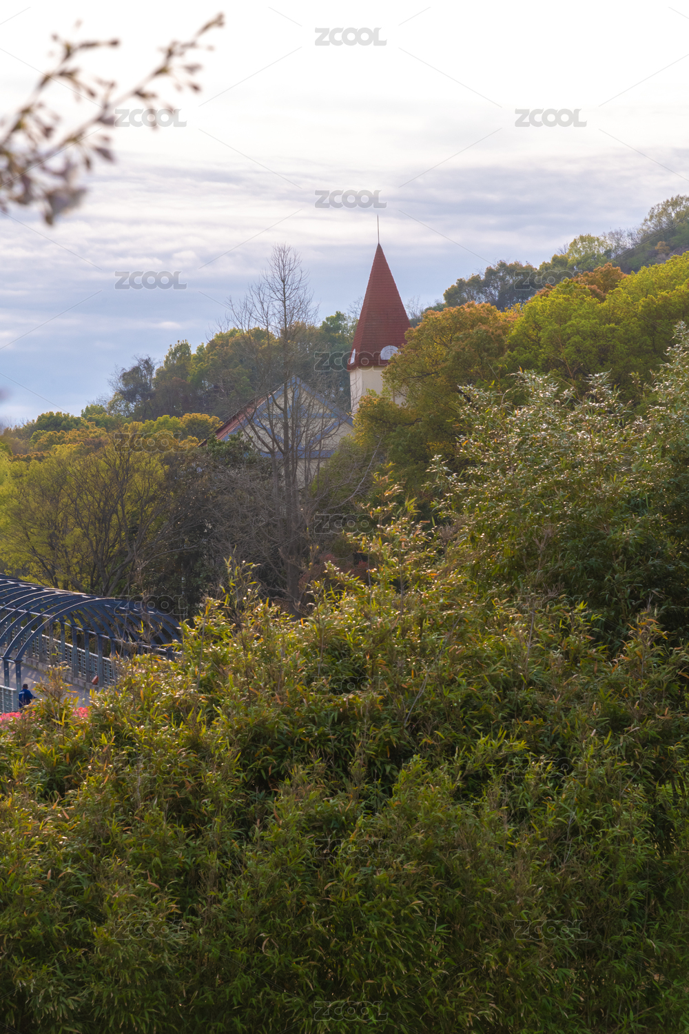 掩映在樹(shù)林中的紅瓦尖頂建筑