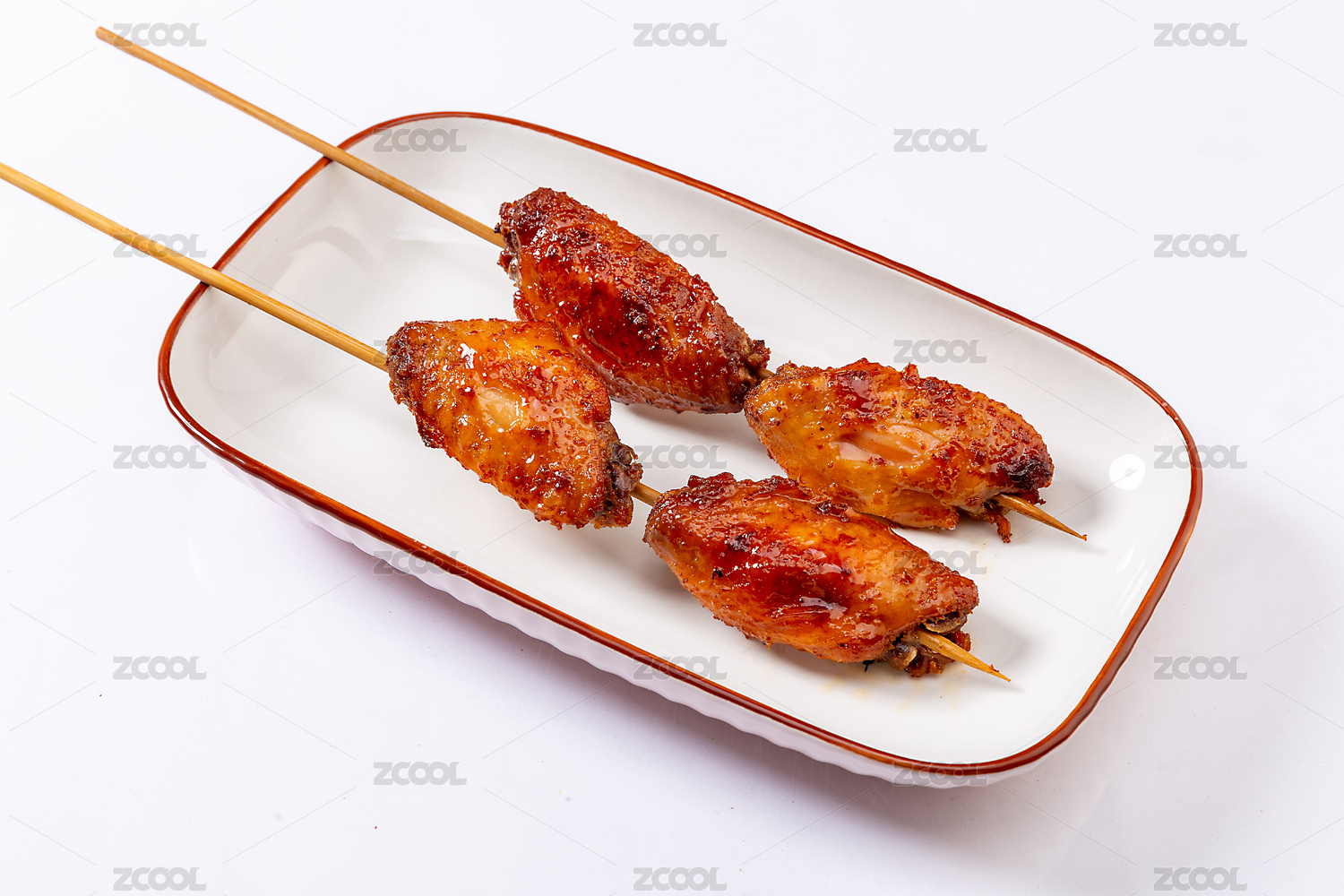 裝在盤子里的雞中翅烤串