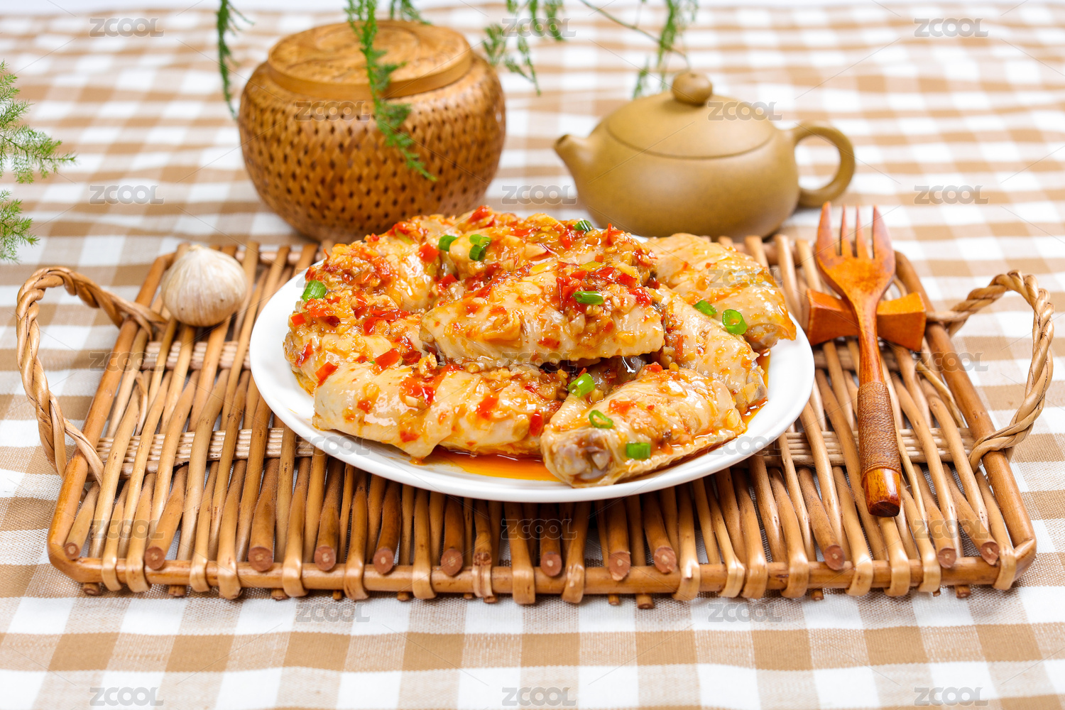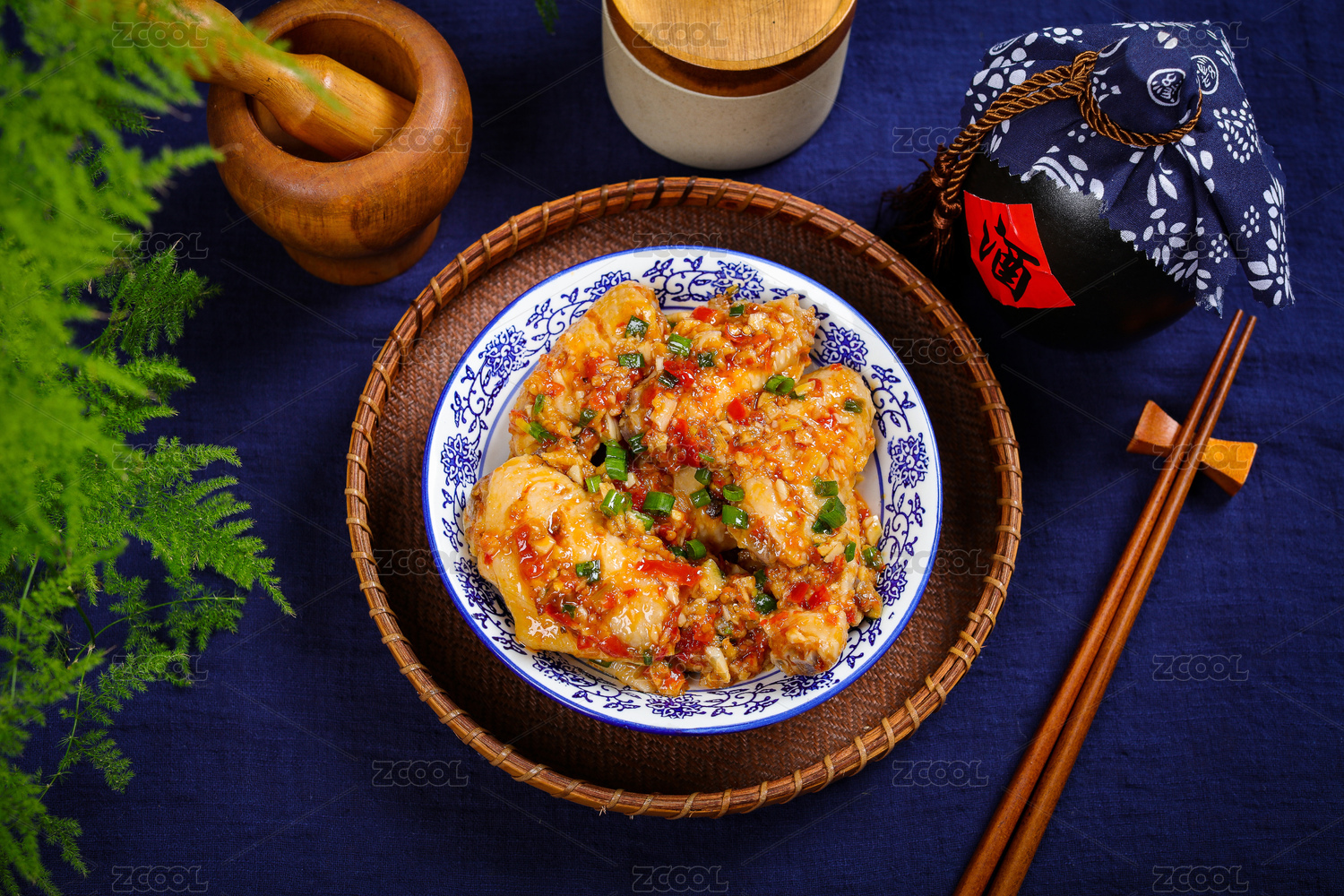 中式桌面上擺放的辣炒雞