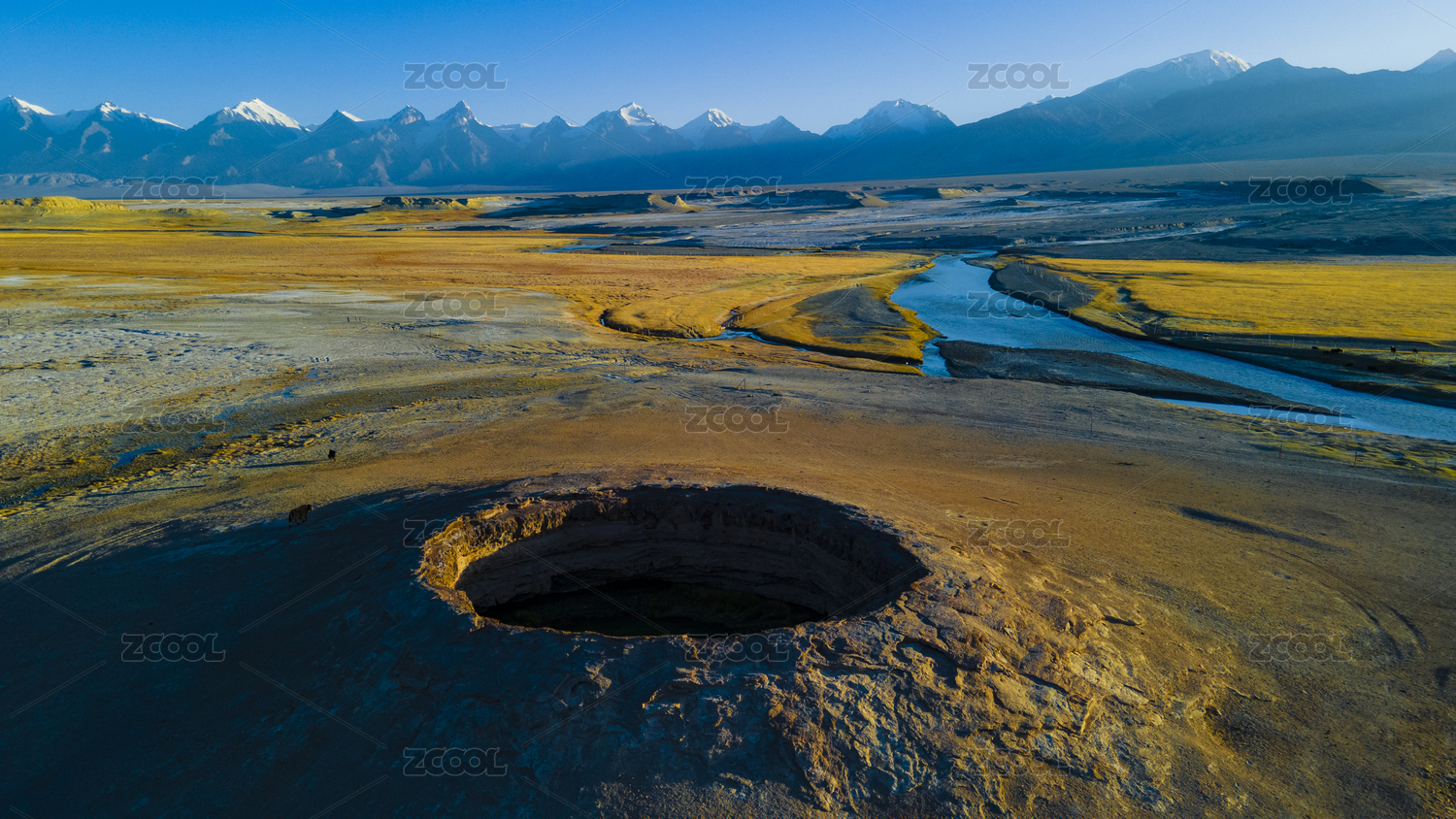 中國新疆帕米爾高原,至木吉火山口的洽木河濕地