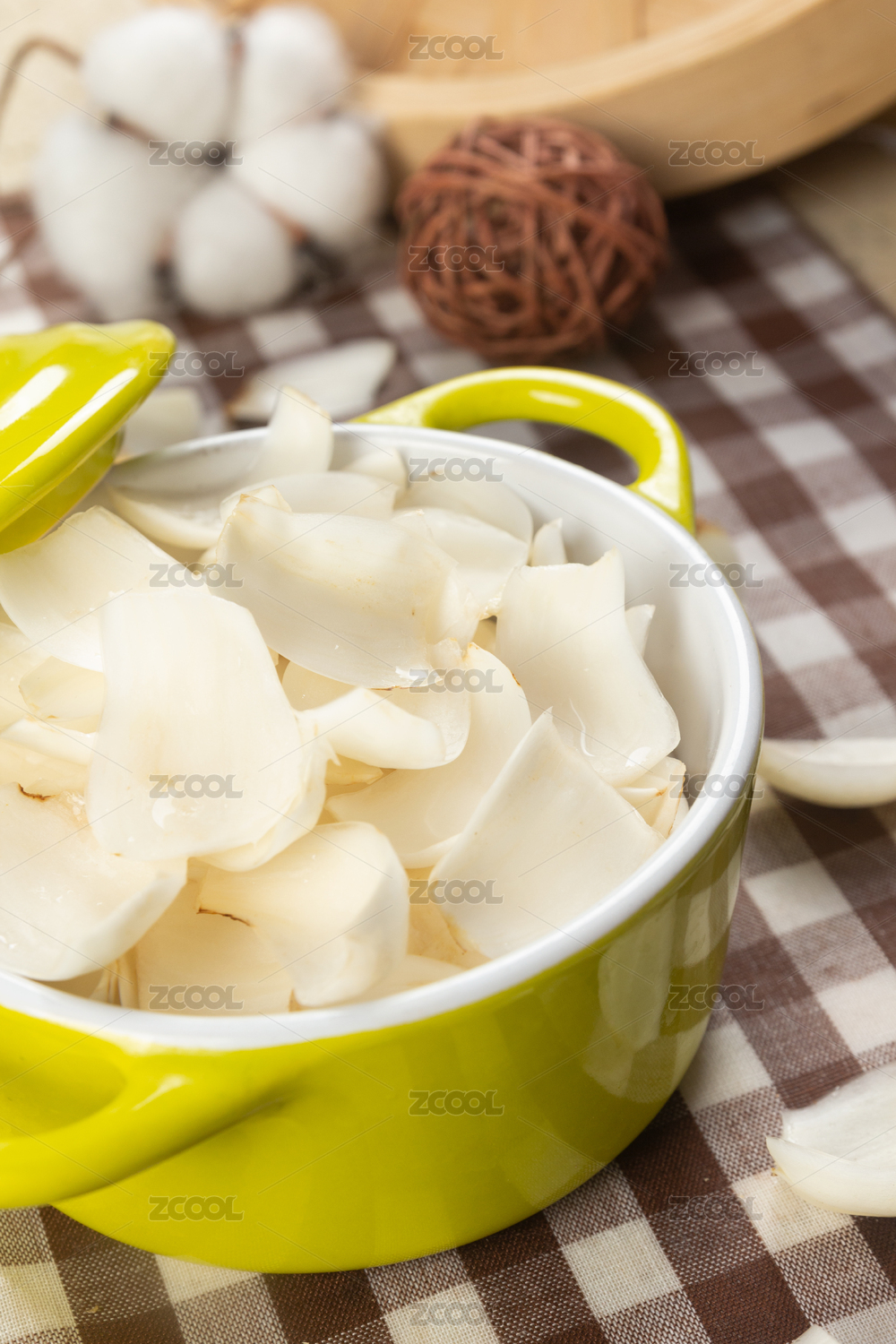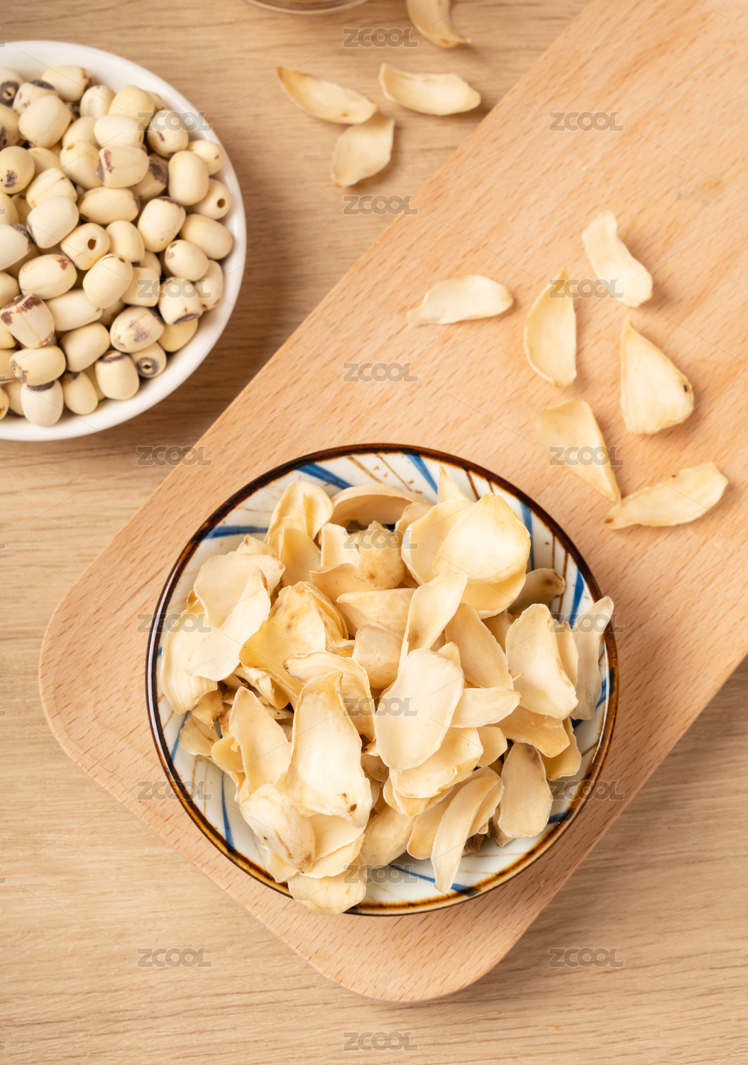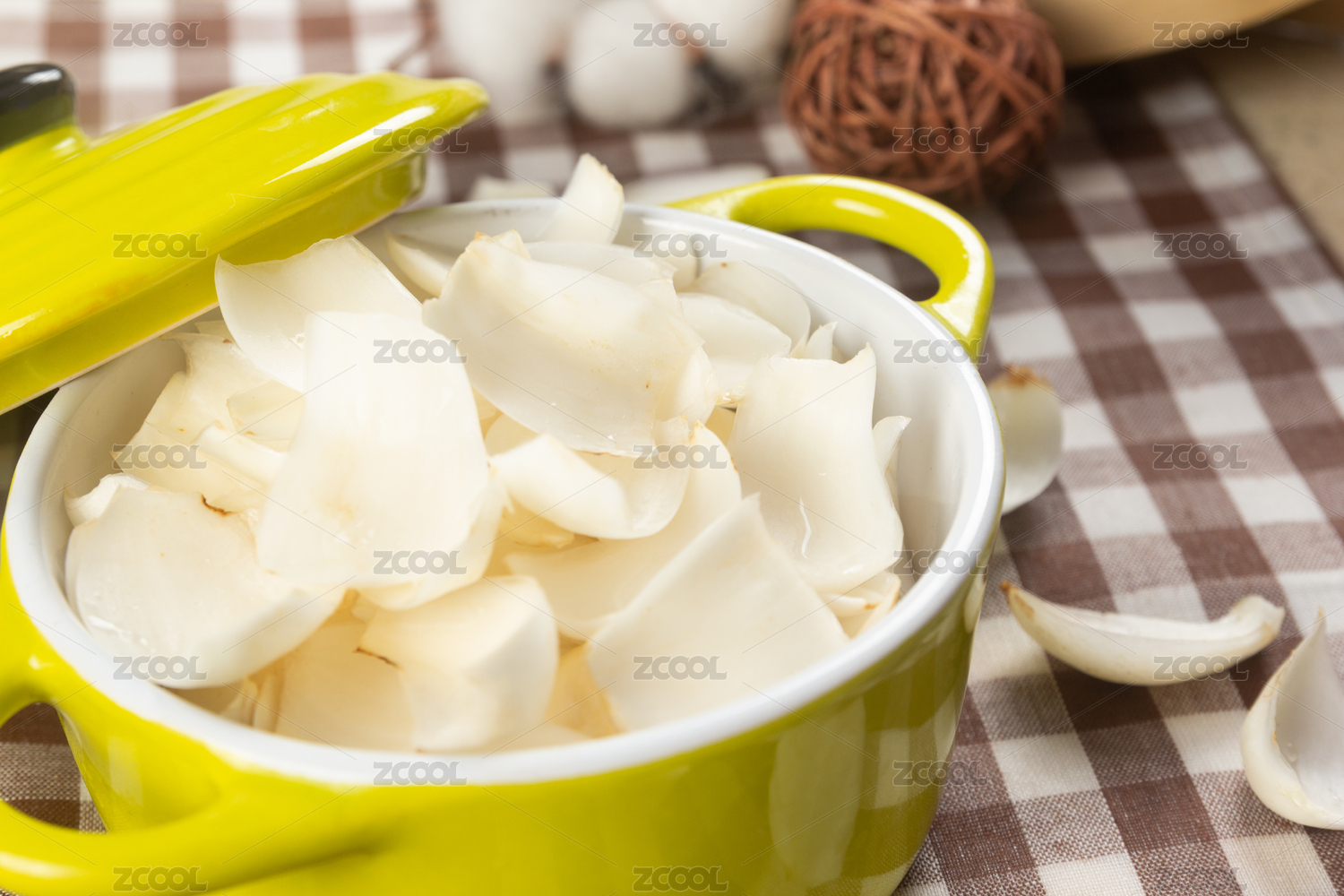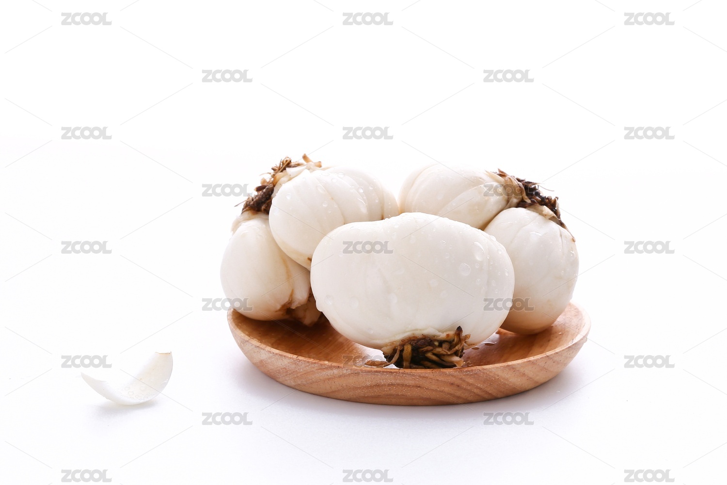 白色背景上盤子里擺放整齊的新鮮食用百合