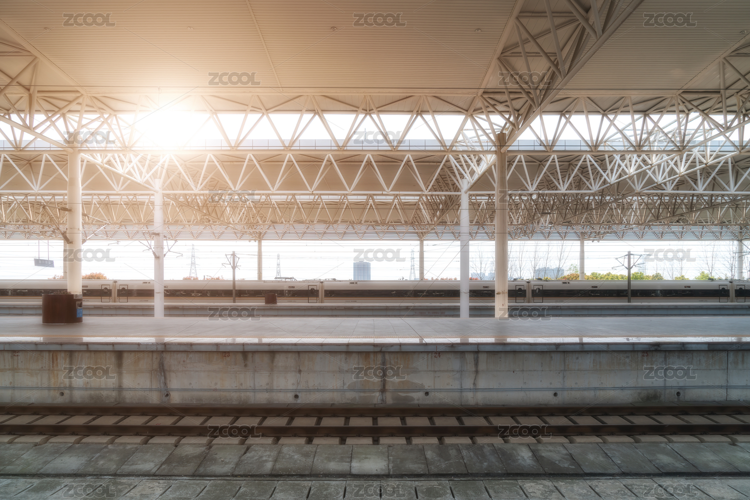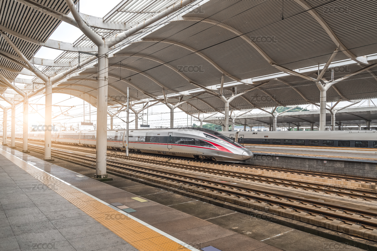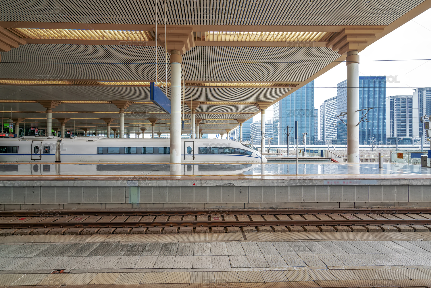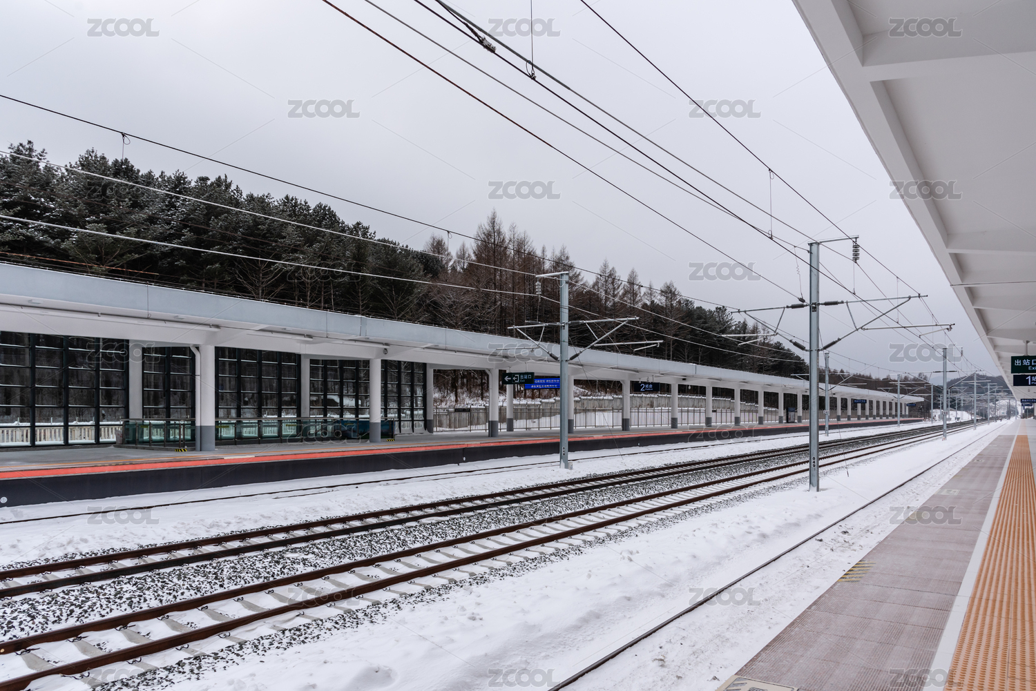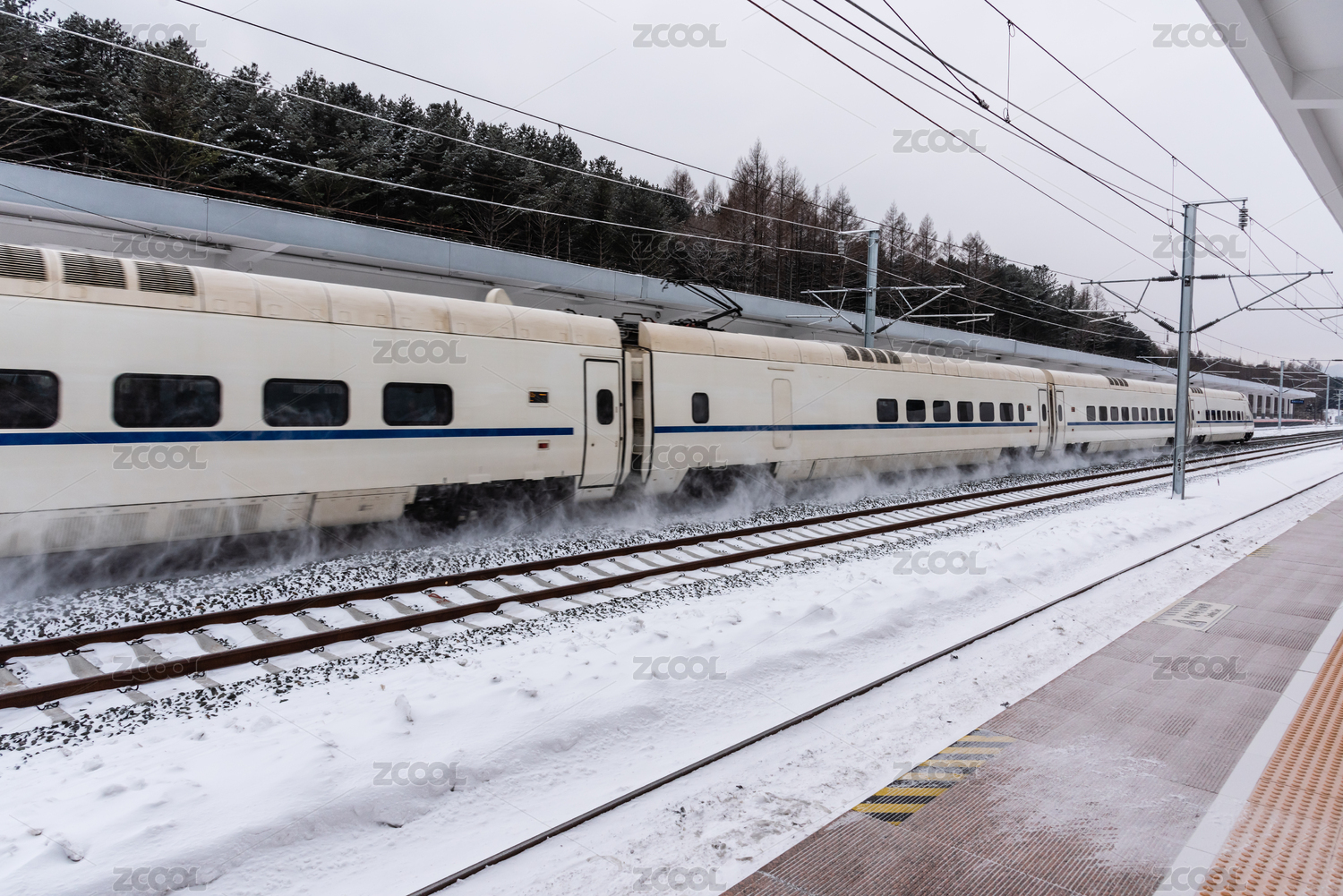 冬天雪后的高鐵站火車站站臺和高鐵列車