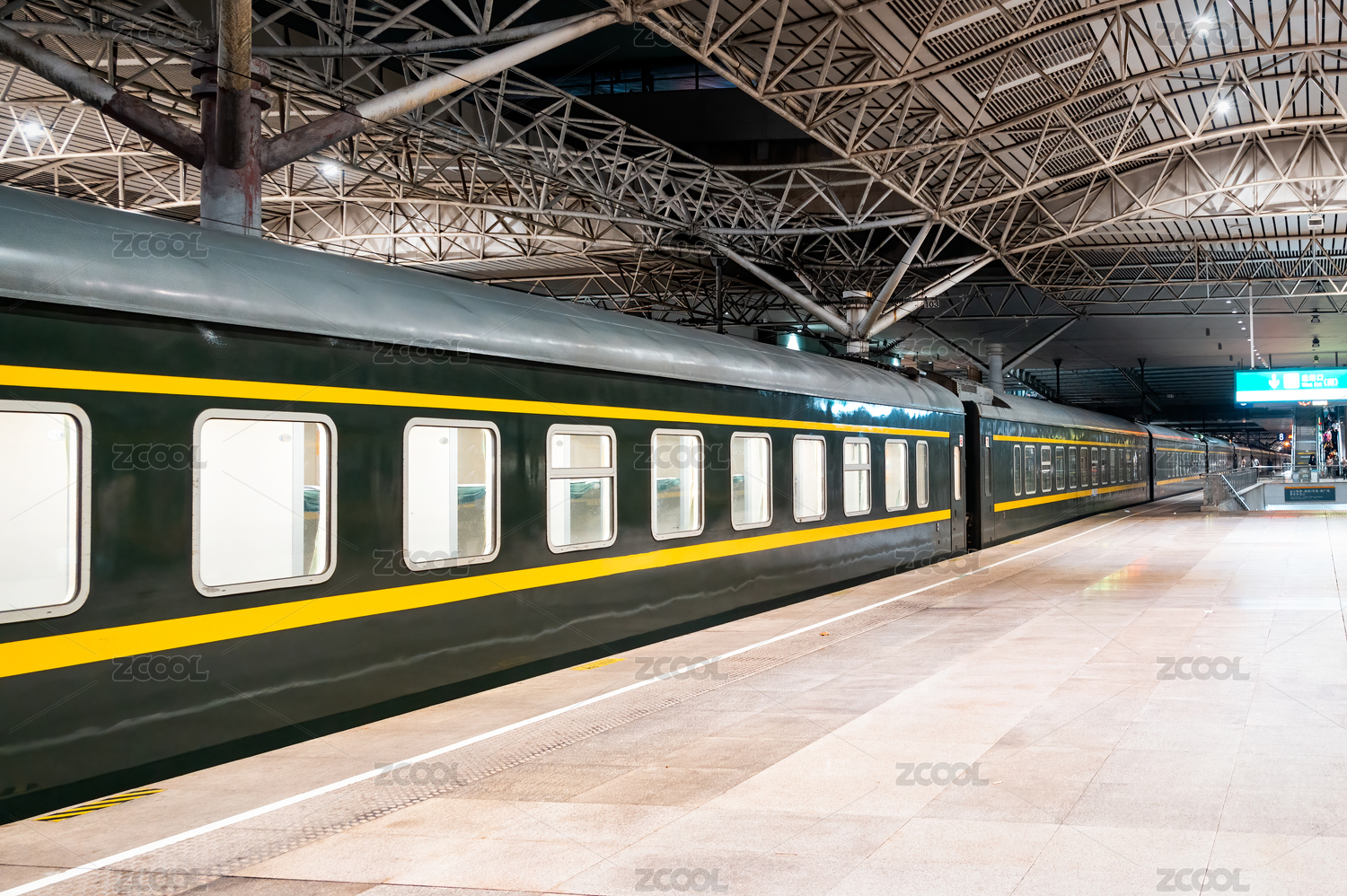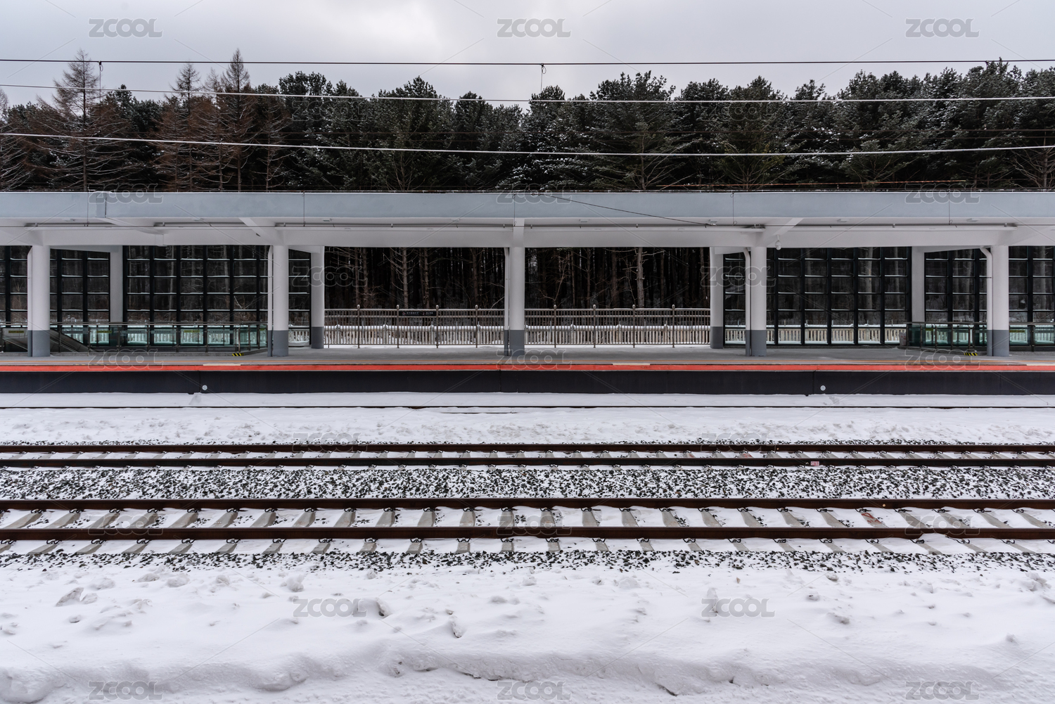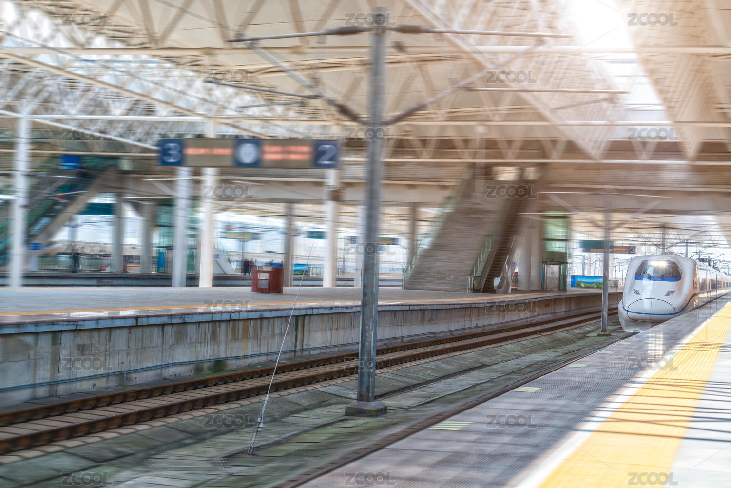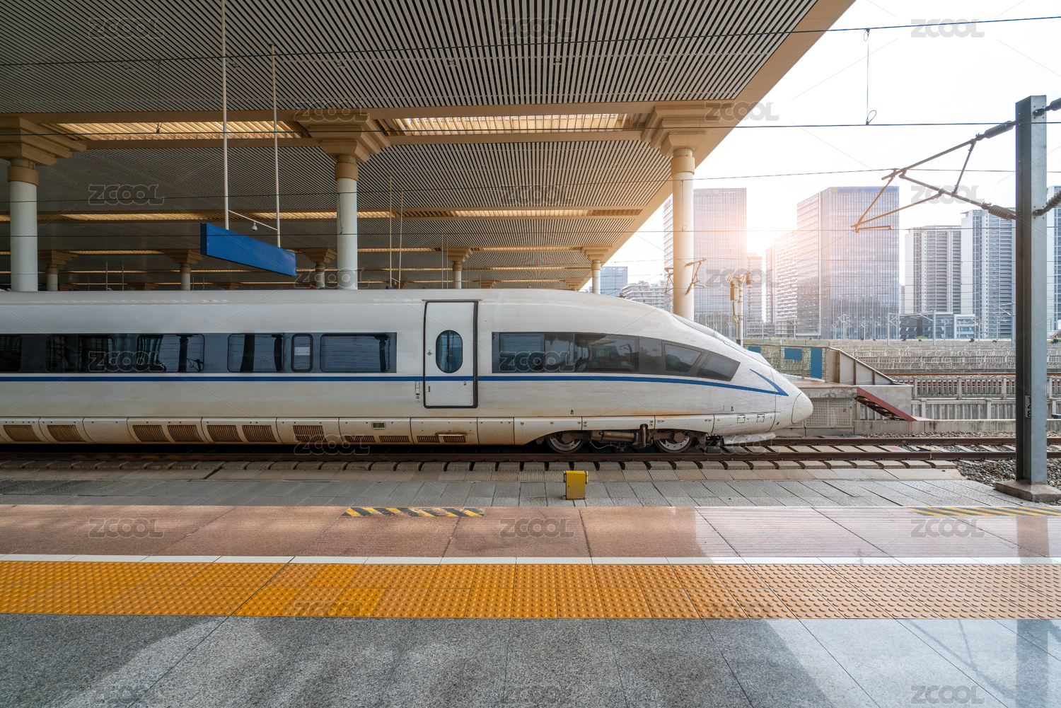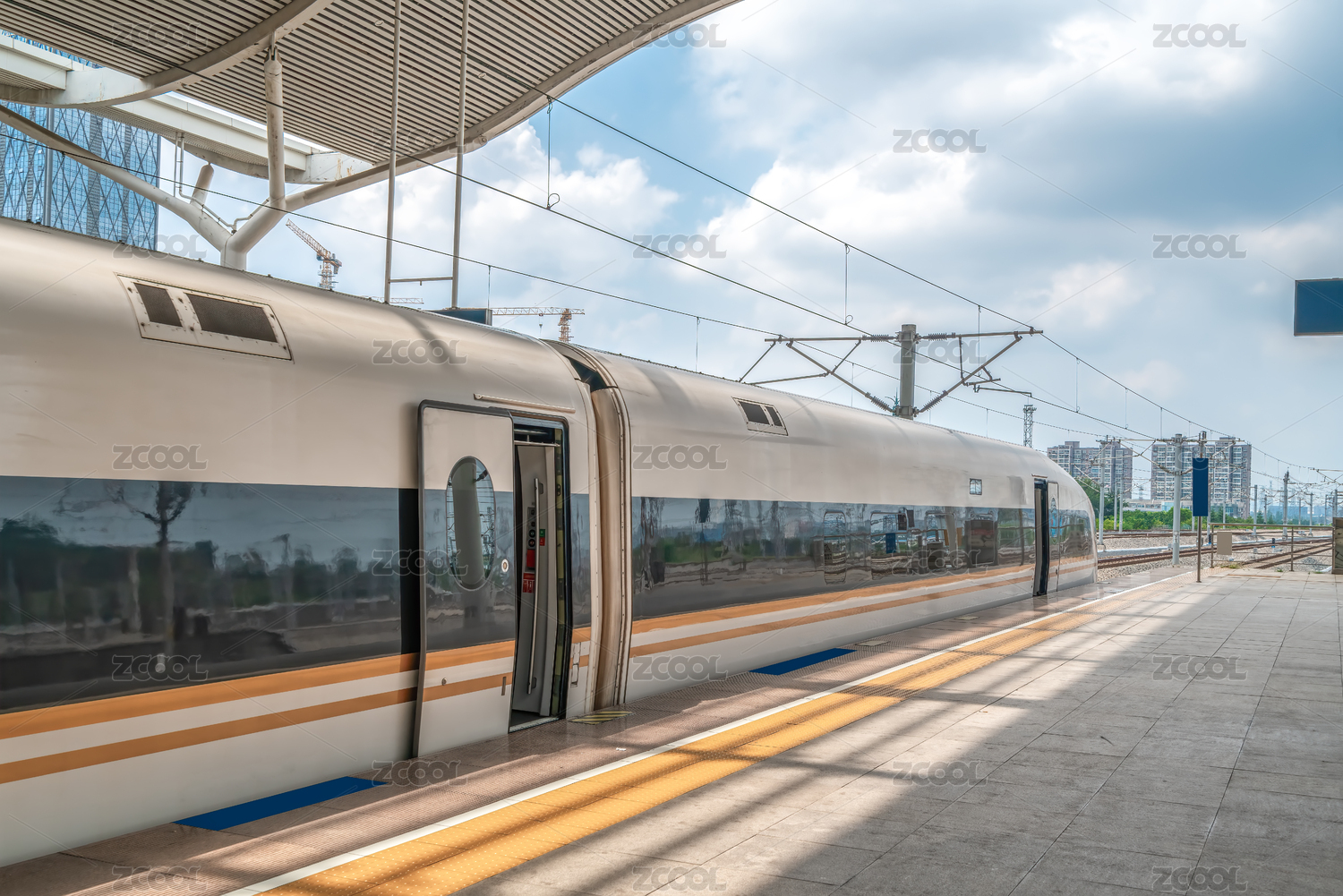 冬天雪后的高鐵站火車站站臺和高鐵列車