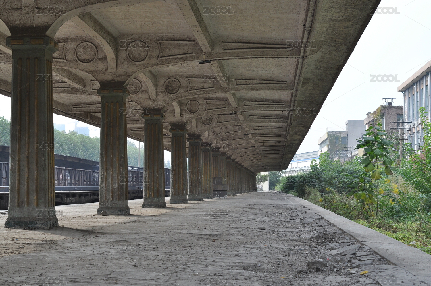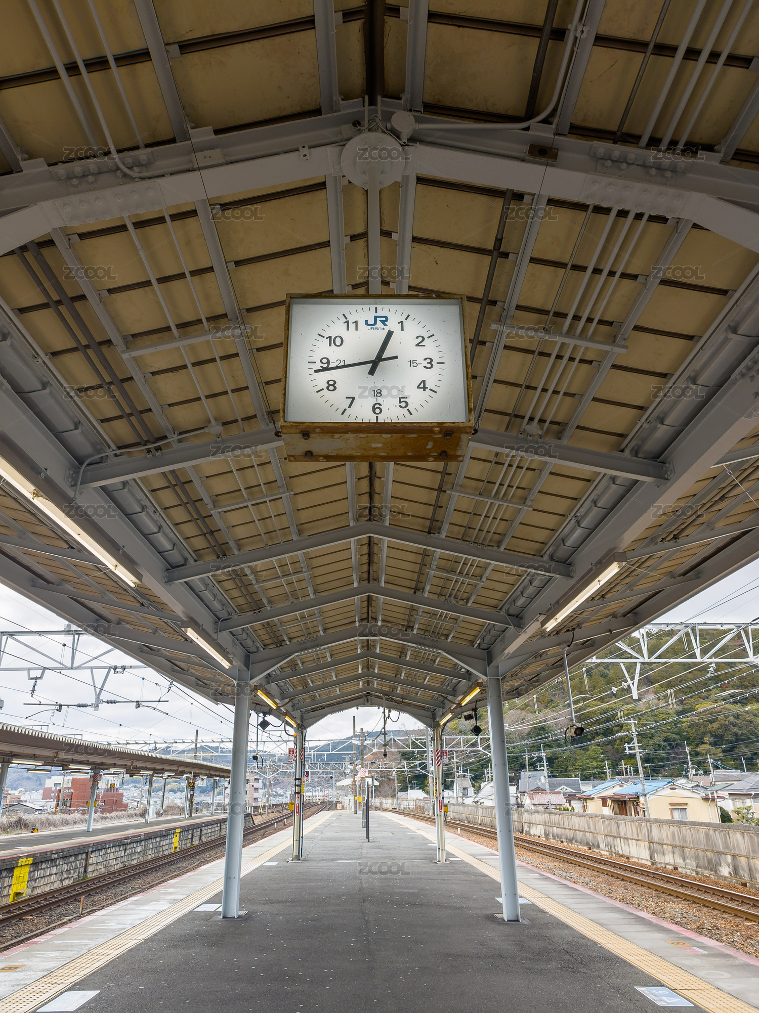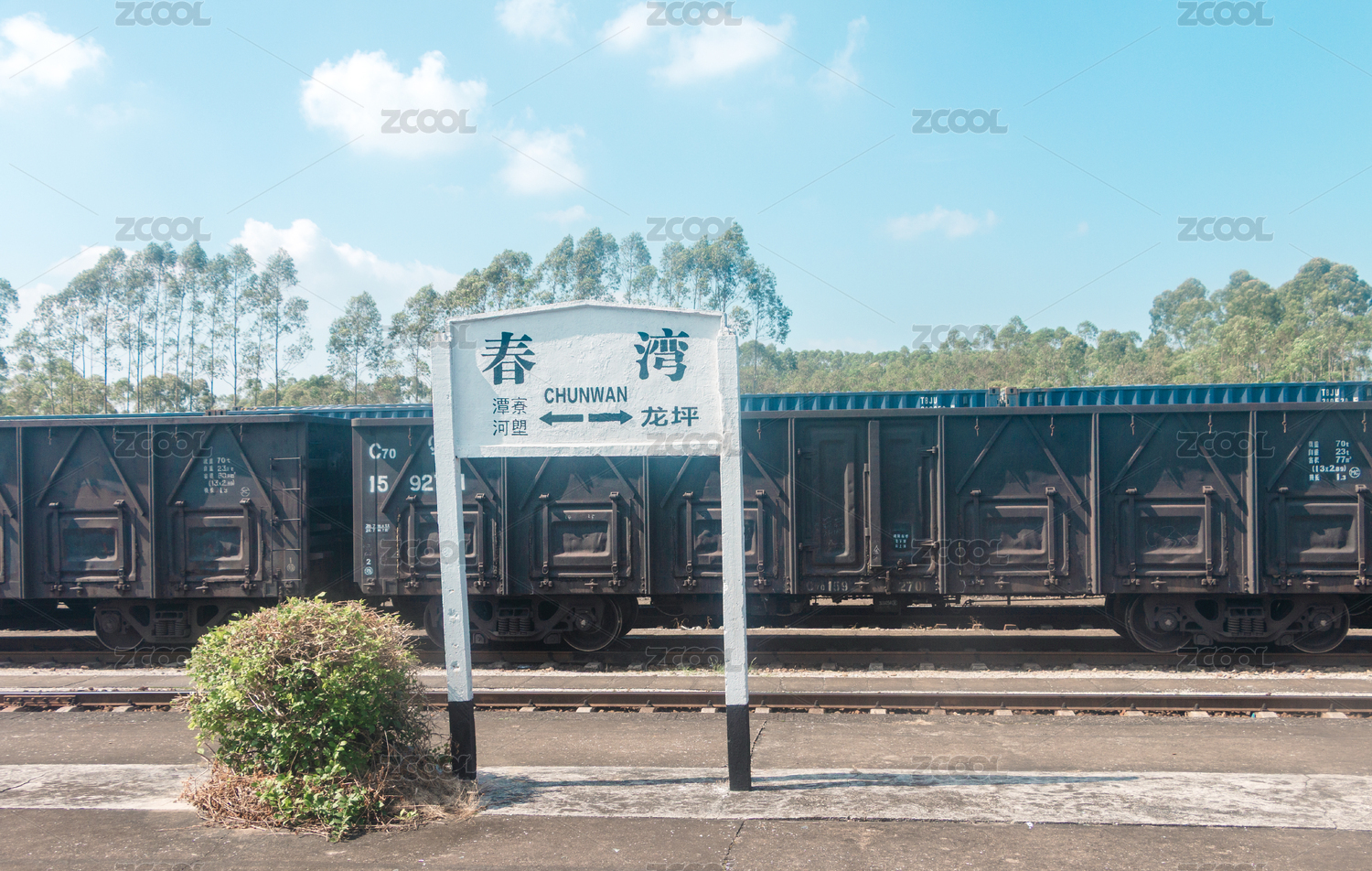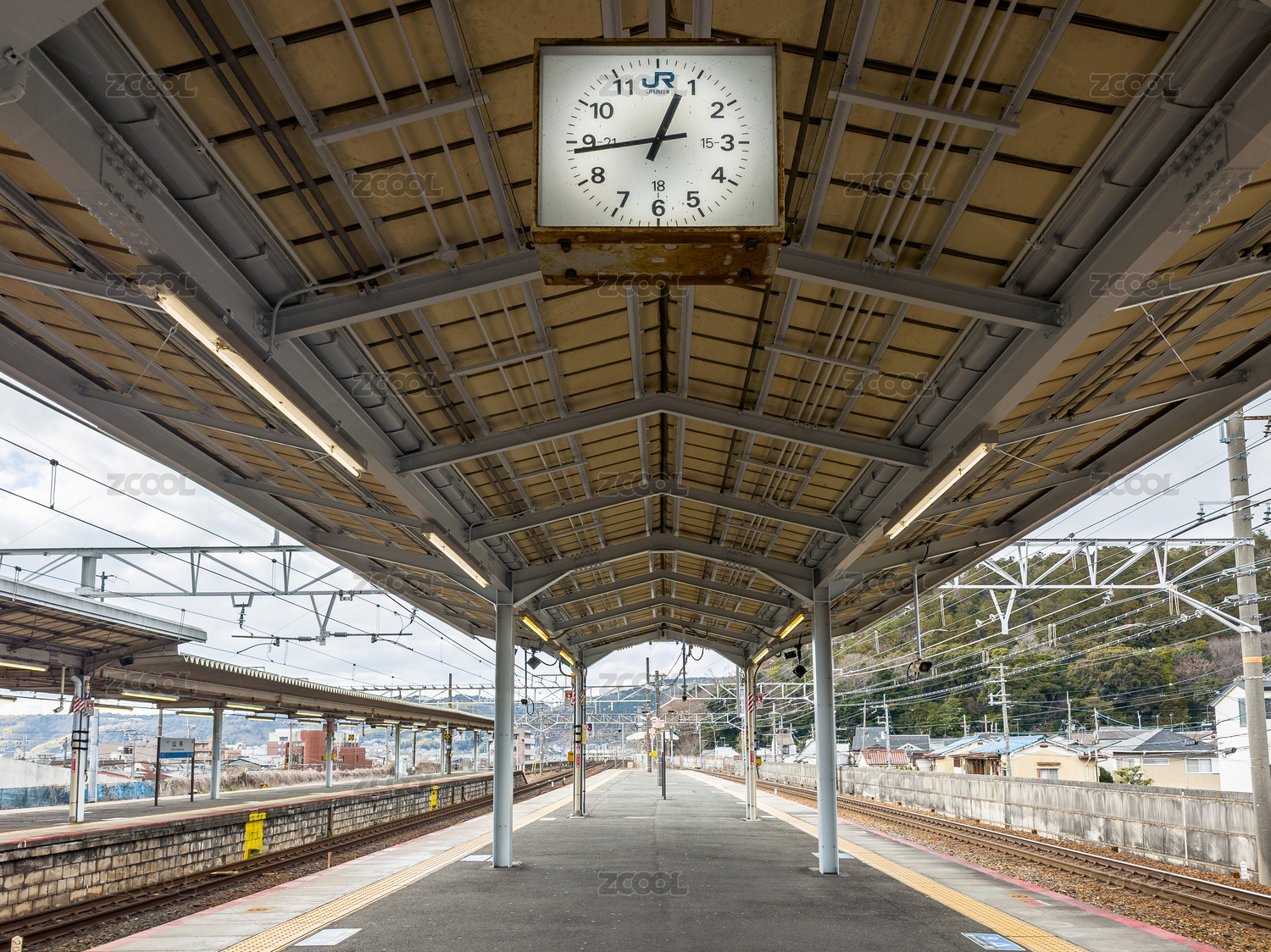 歐洲小鎮(zhèn)火車站站臺以村莊和山為背景