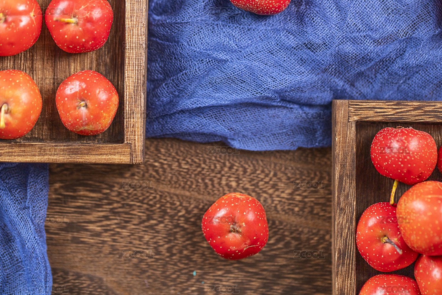 山里紅山楂暗調(diào)藍(lán)色麻布背景