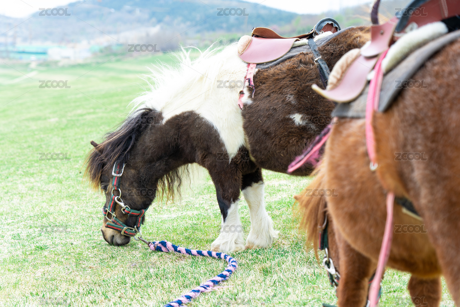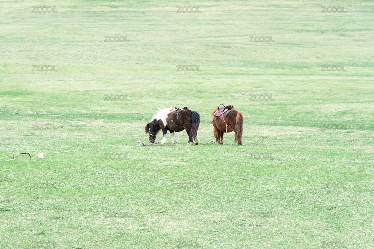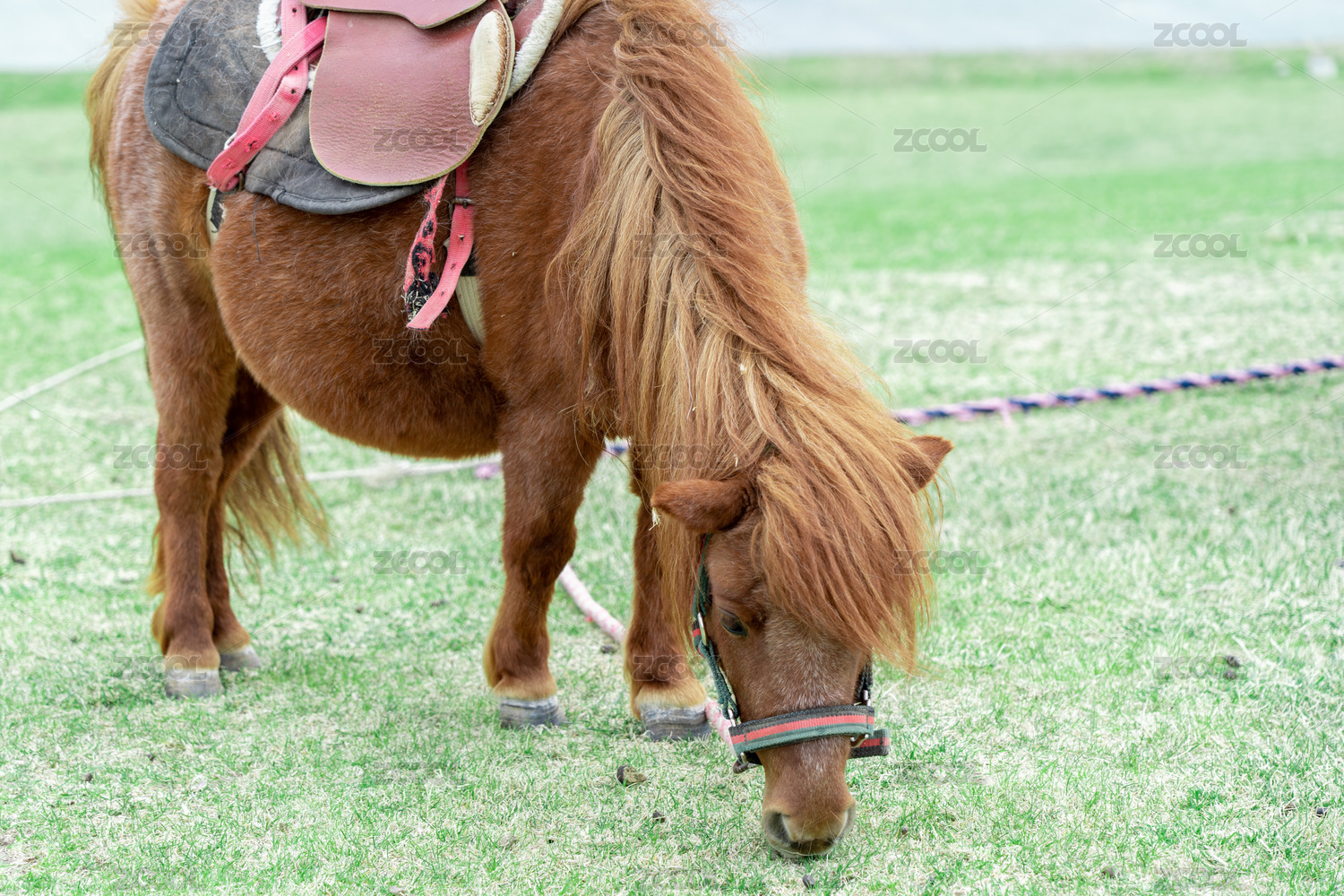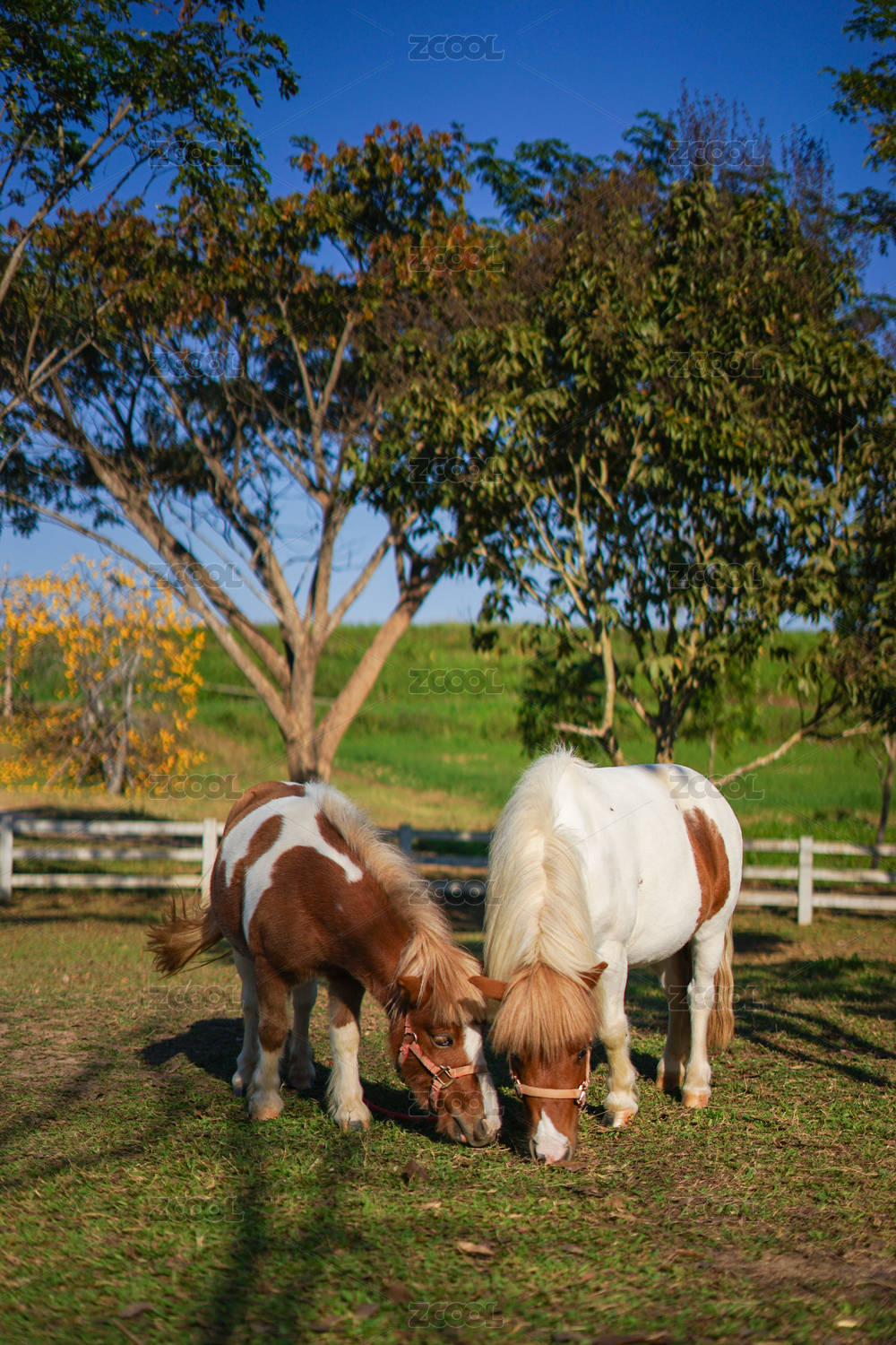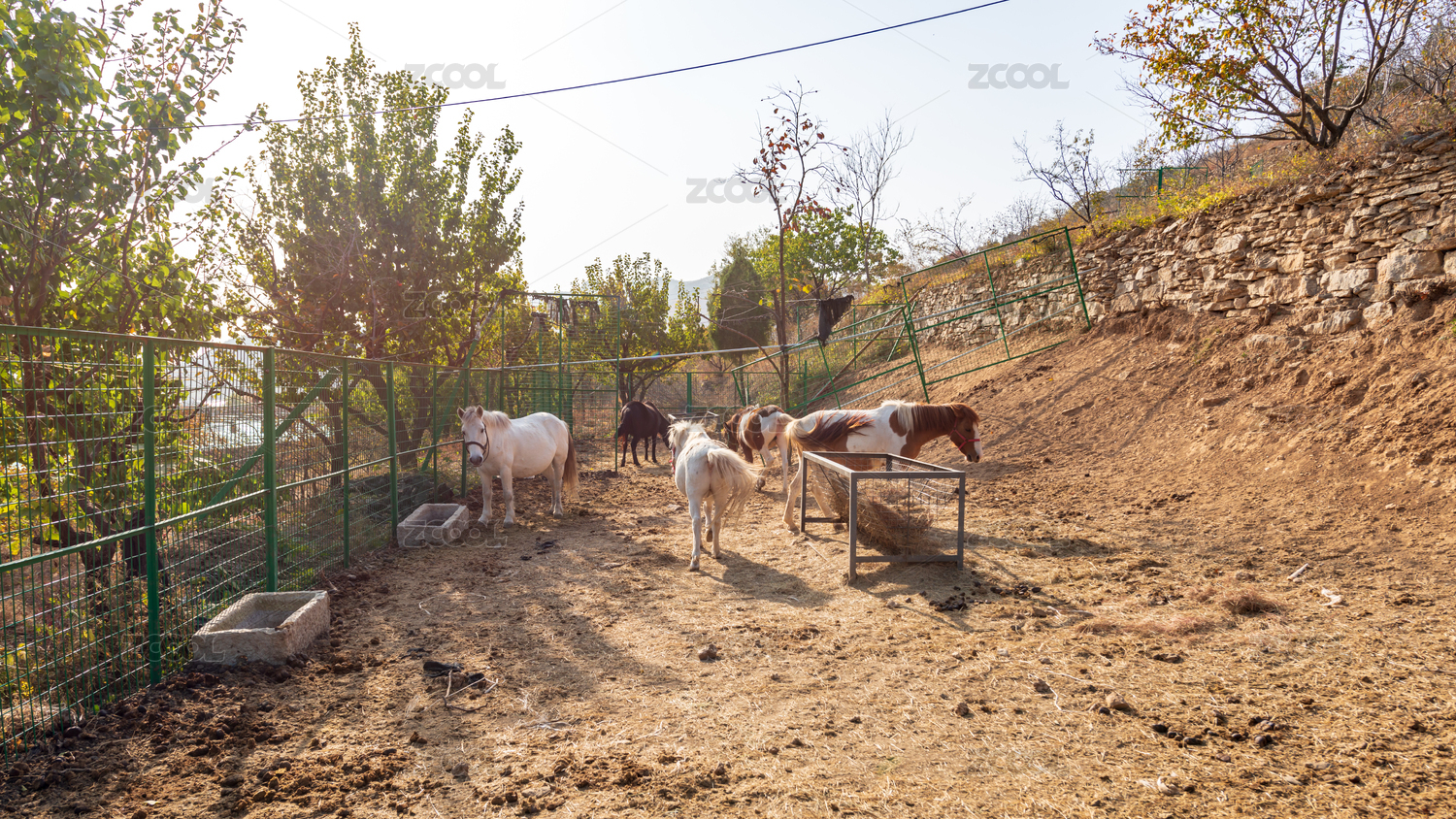 秋季白天農(nóng)戶養(yǎng)殖的小矮馬