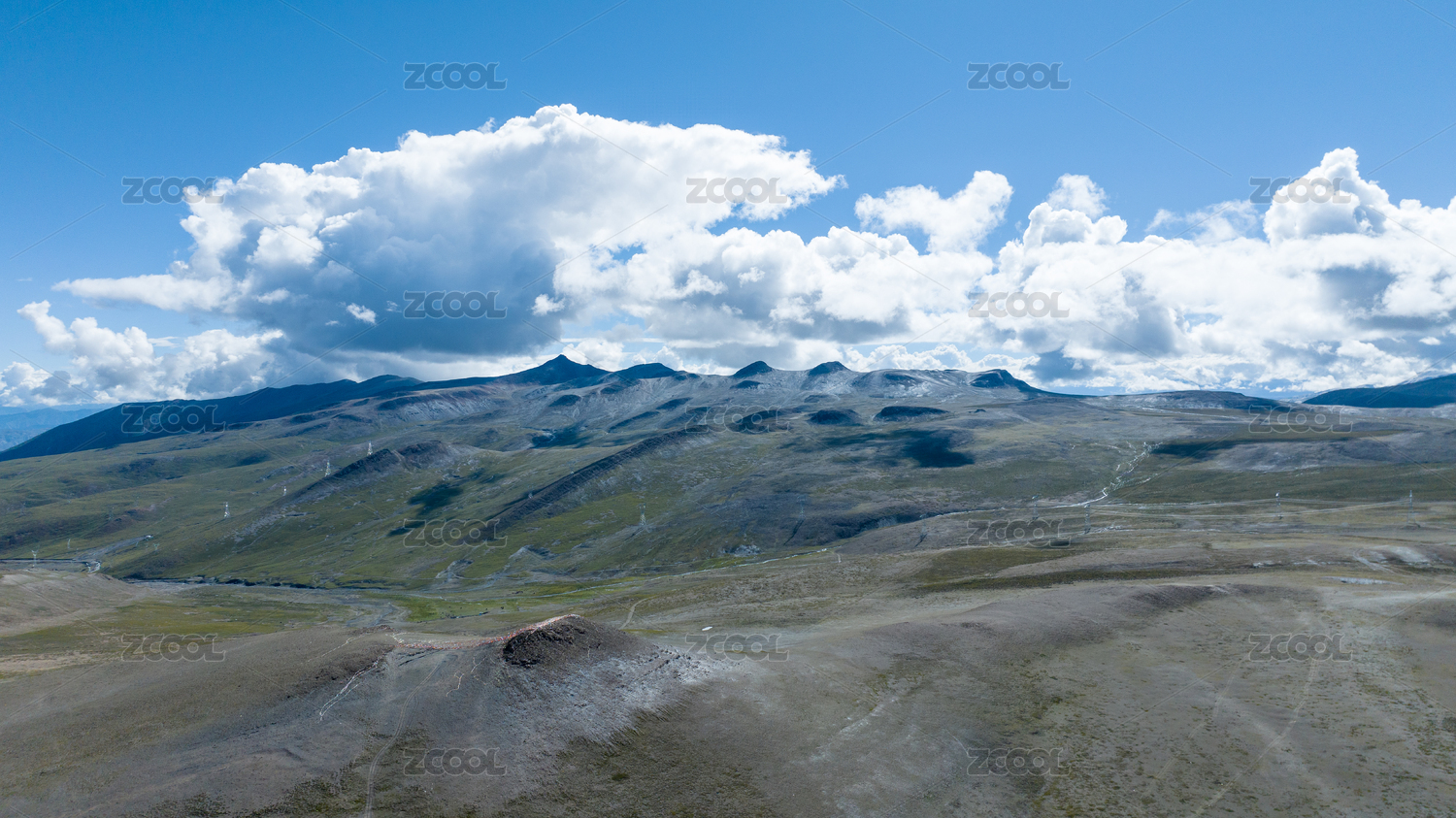 晴朗天氣下中國西藏高山牧場綠色景觀