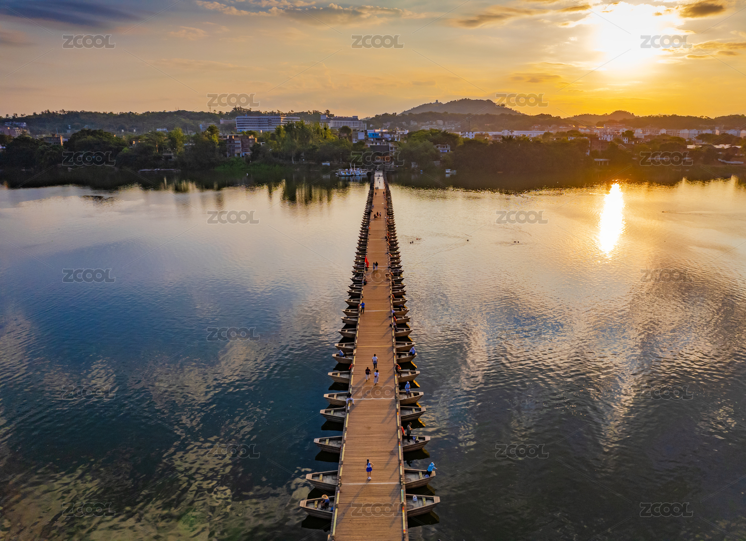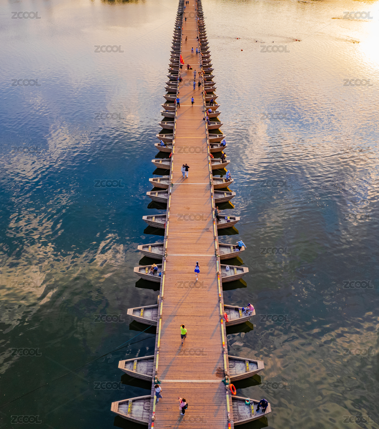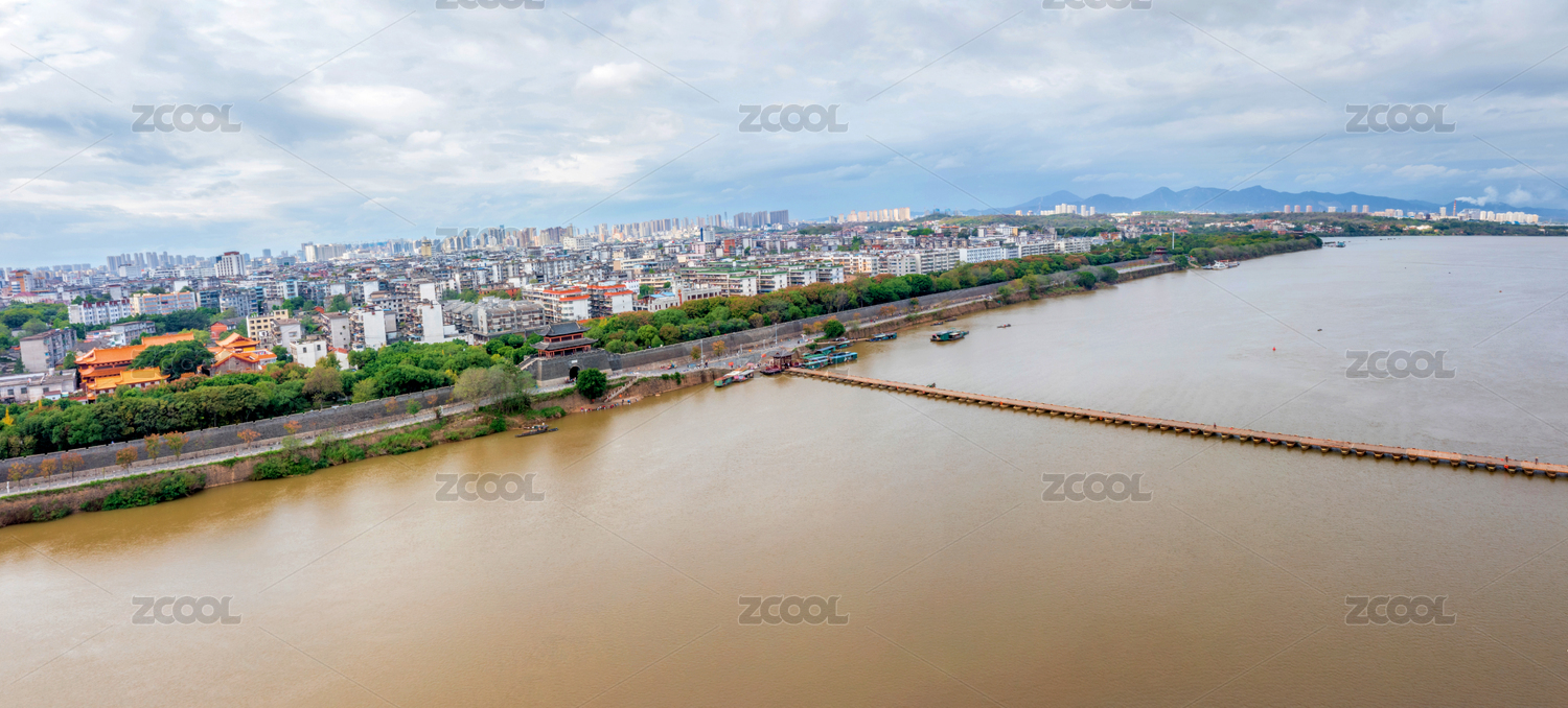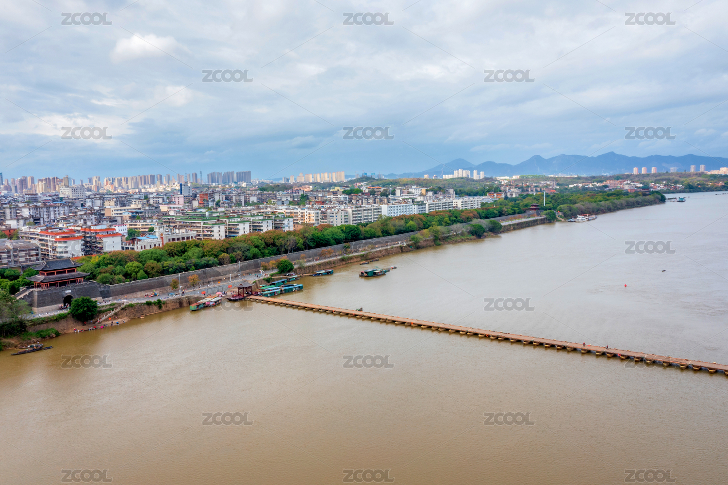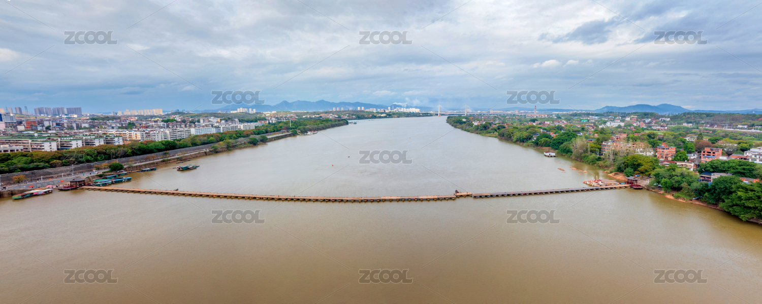中國江西贛州江南宋城4A景區(qū)古浮橋全景圖航拍