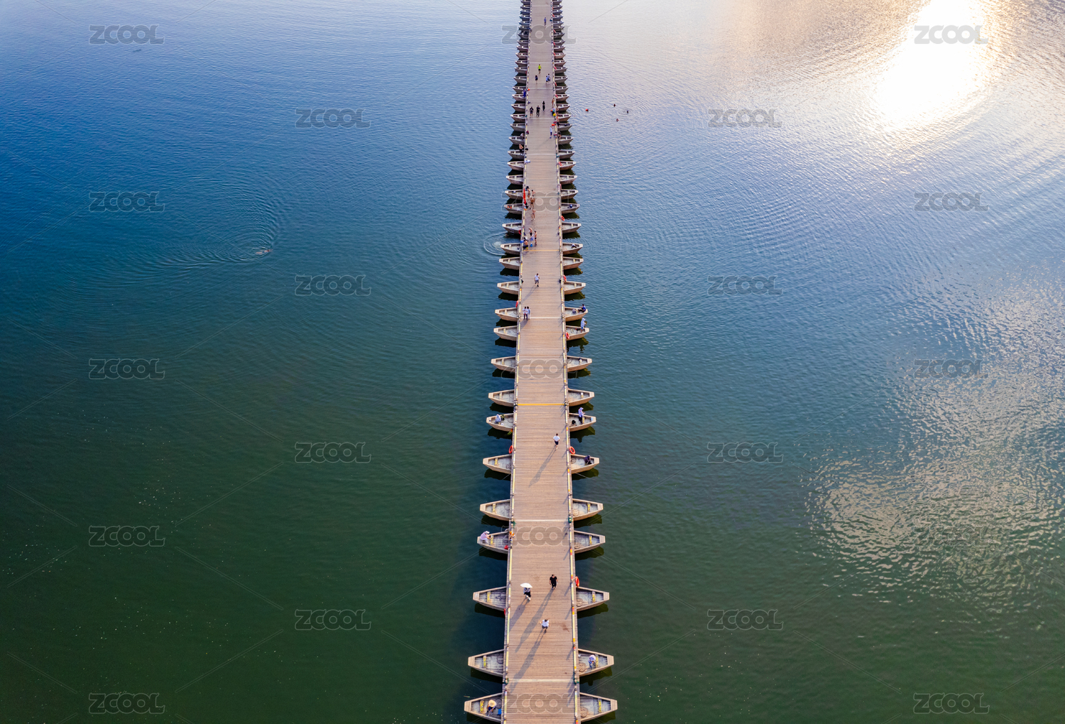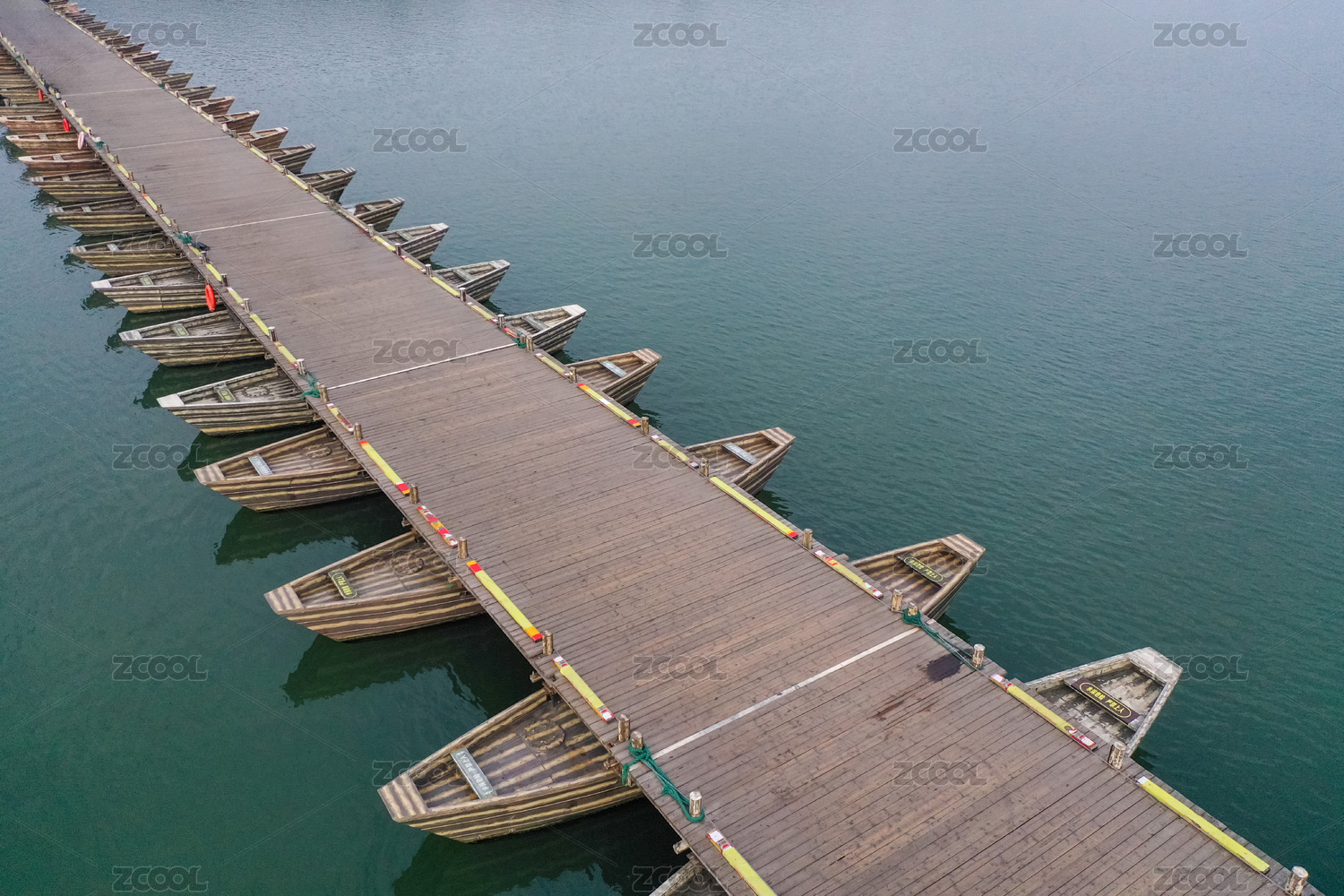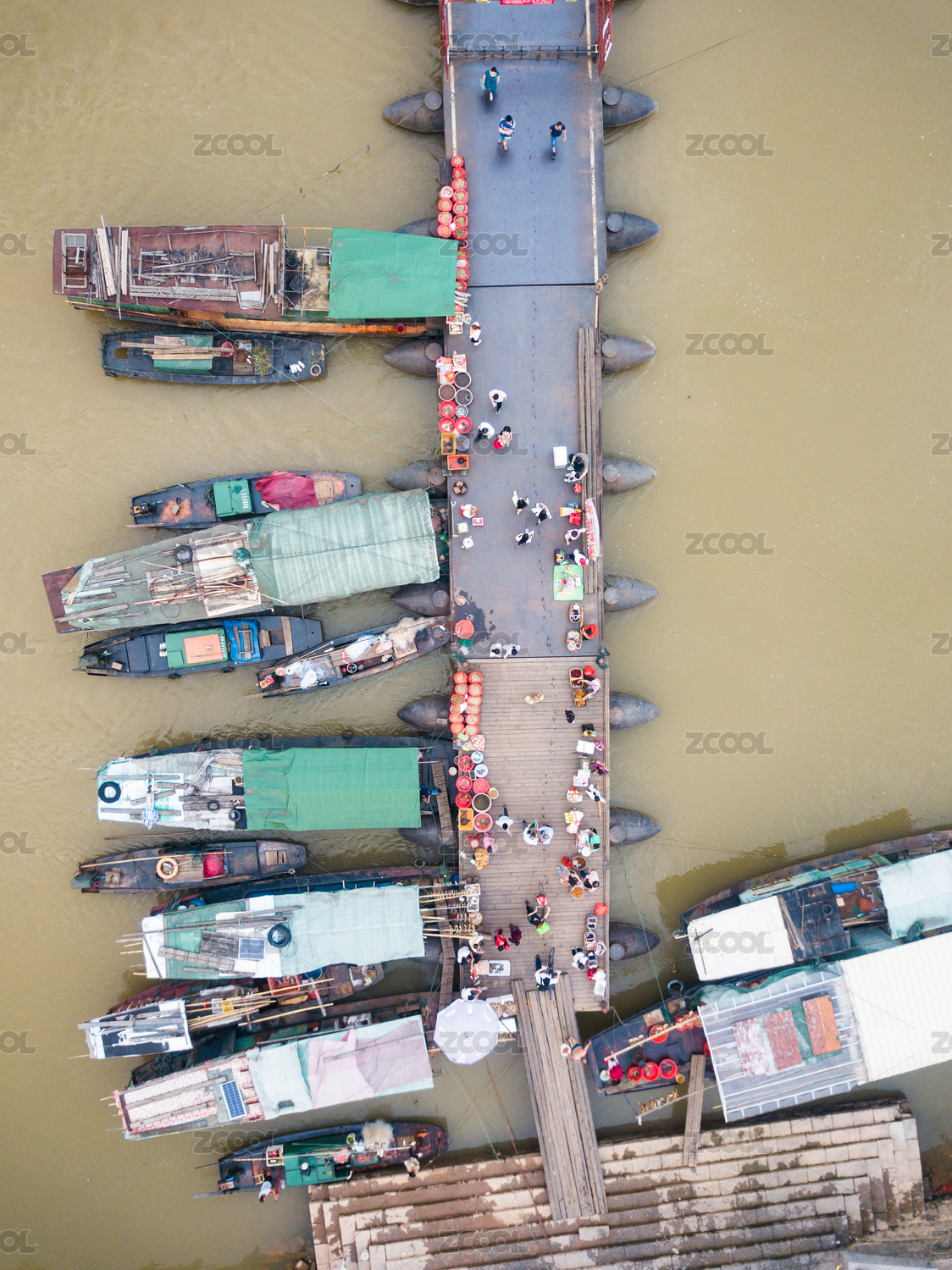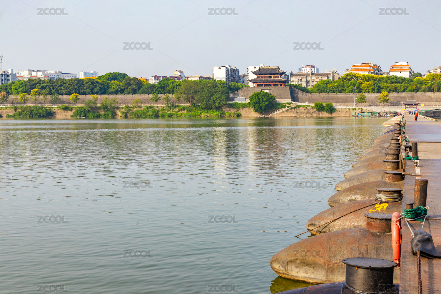 中國江西贛州江南宋城4A景區(qū)古浮橋全景圖航拍