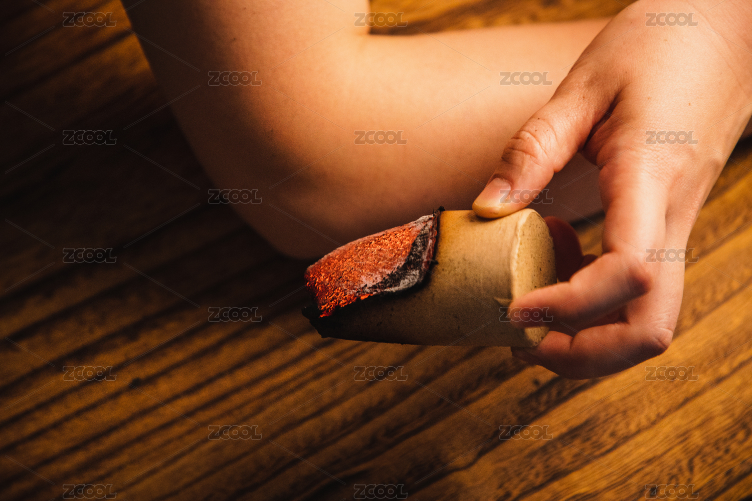 一只拿著燃燒著的艾灸條的手