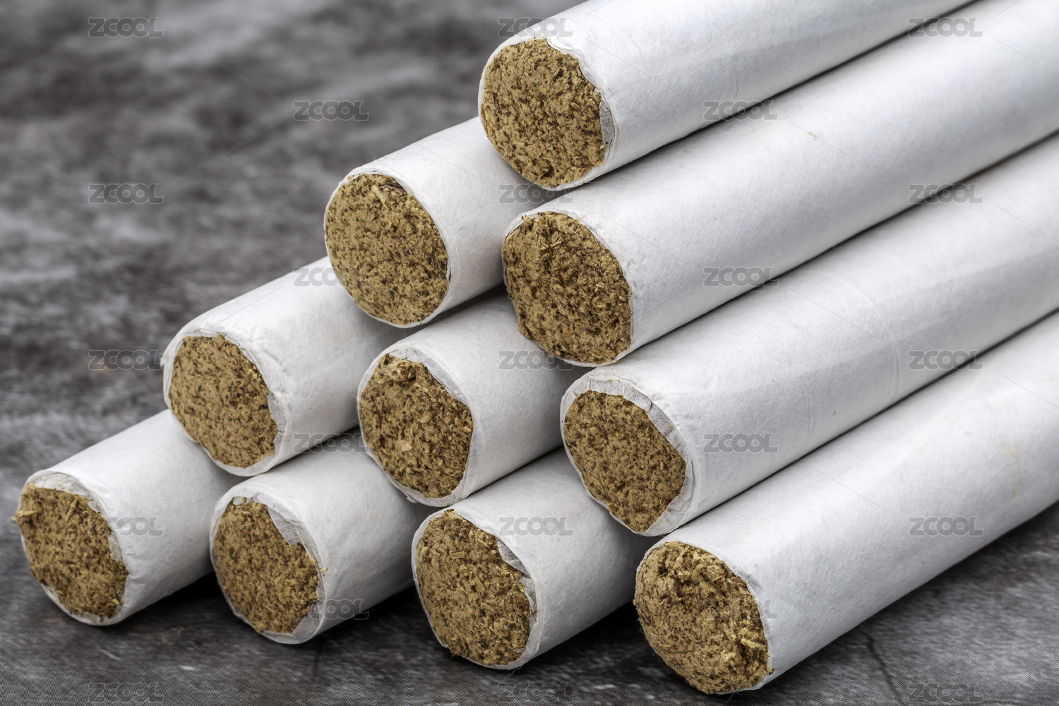 中藥材艾灸條在灰色的桌面上