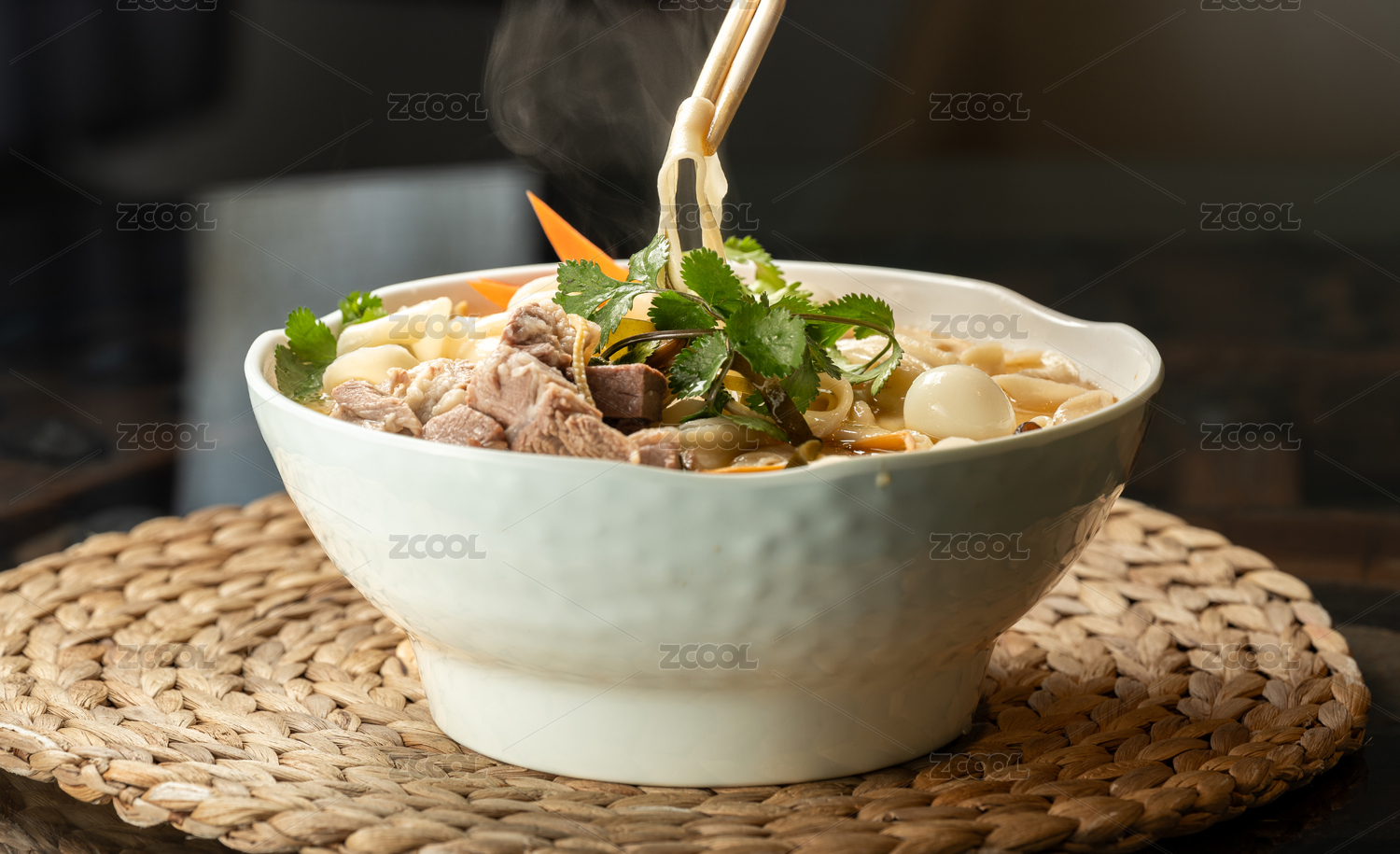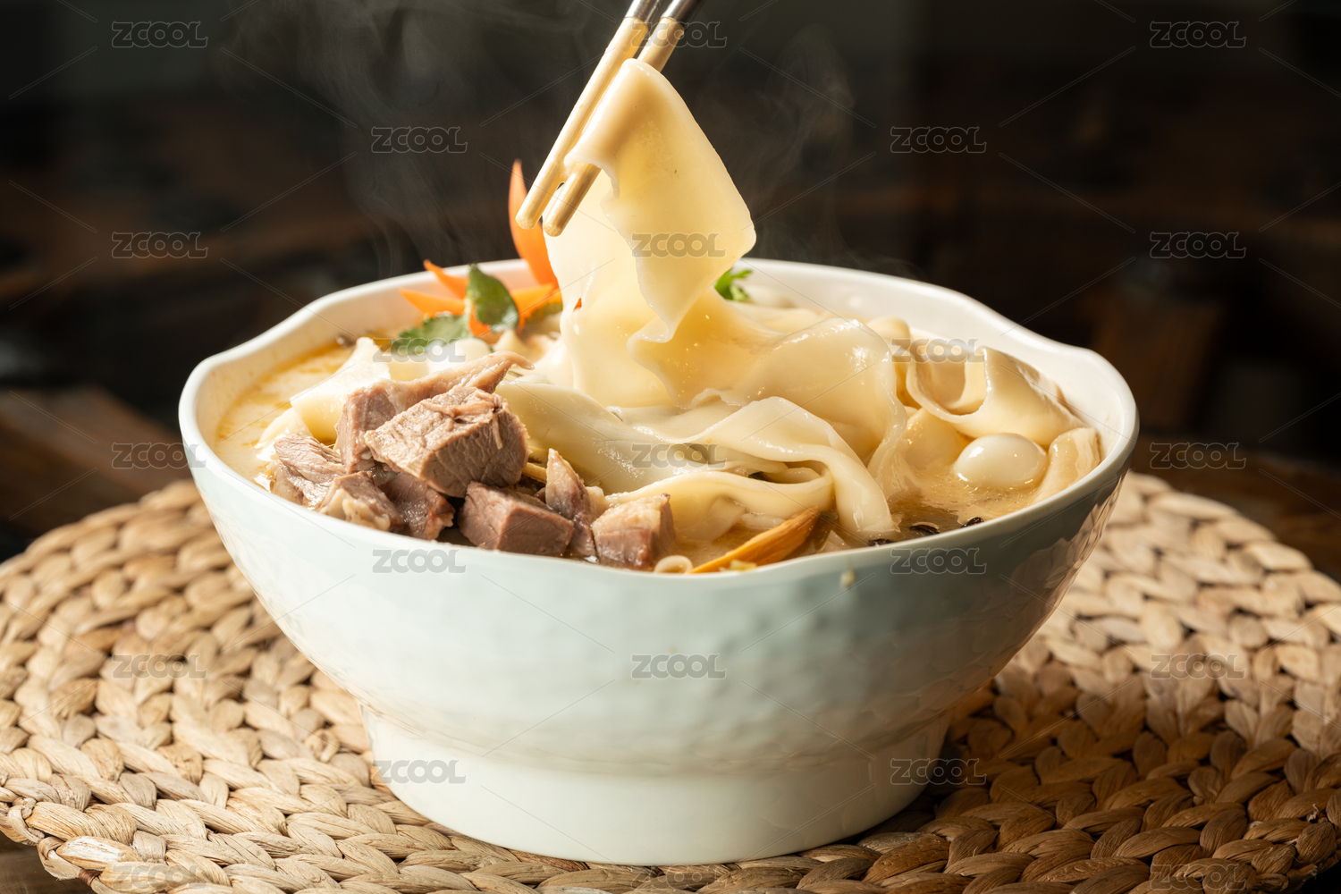餐具里擺放的羊肉拉面