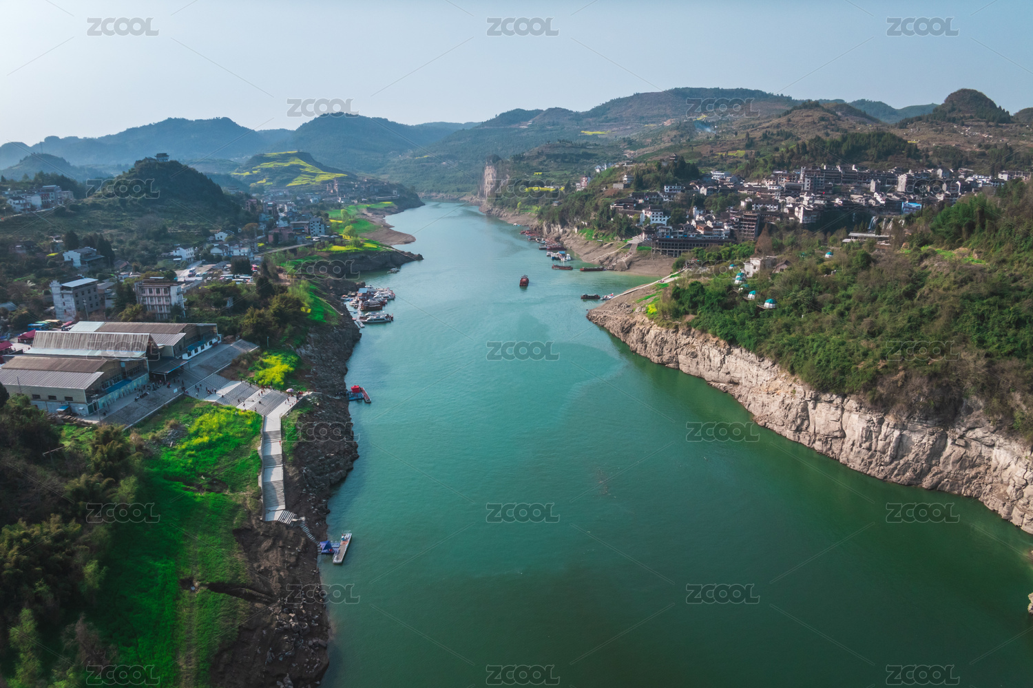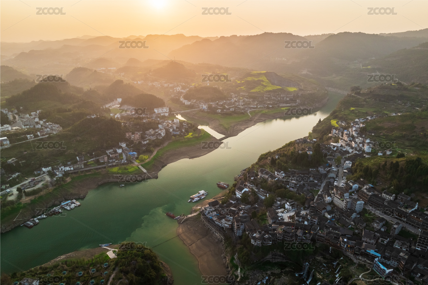 湖南湘西芙蓉鎮(zhèn)酉水河航拍風(fēng)光