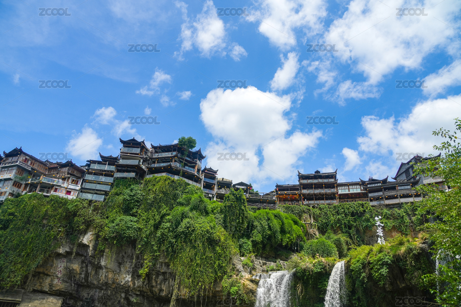 中國湖南湘西芙蓉古鎮(zhèn)酉水河瀑布風(fēng)光