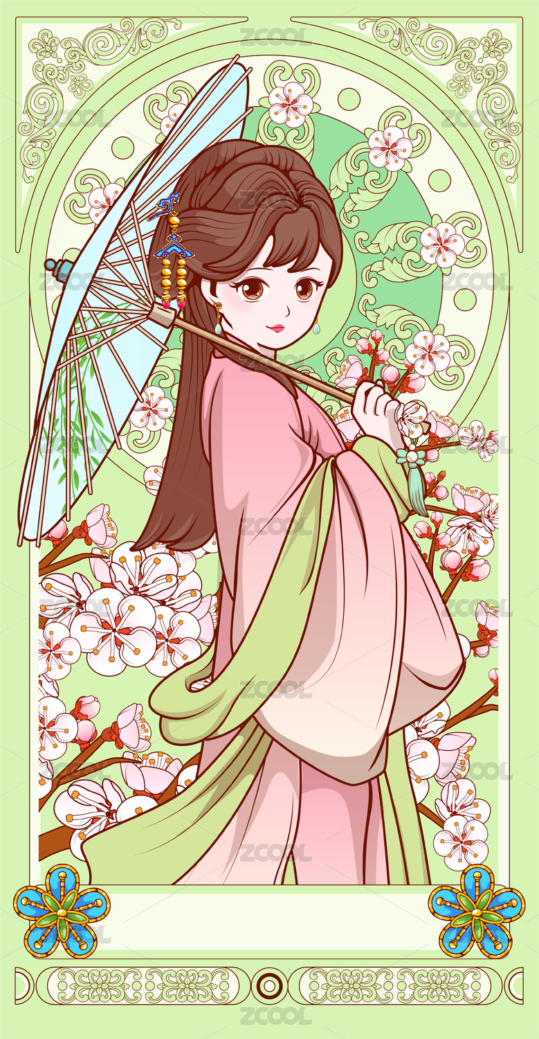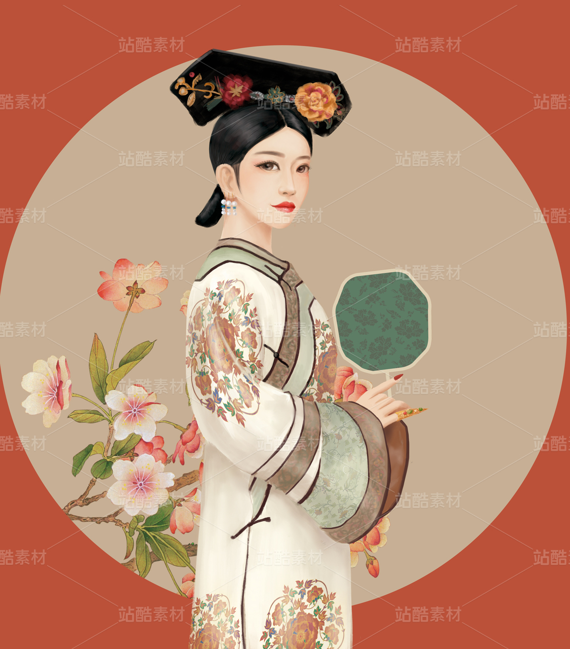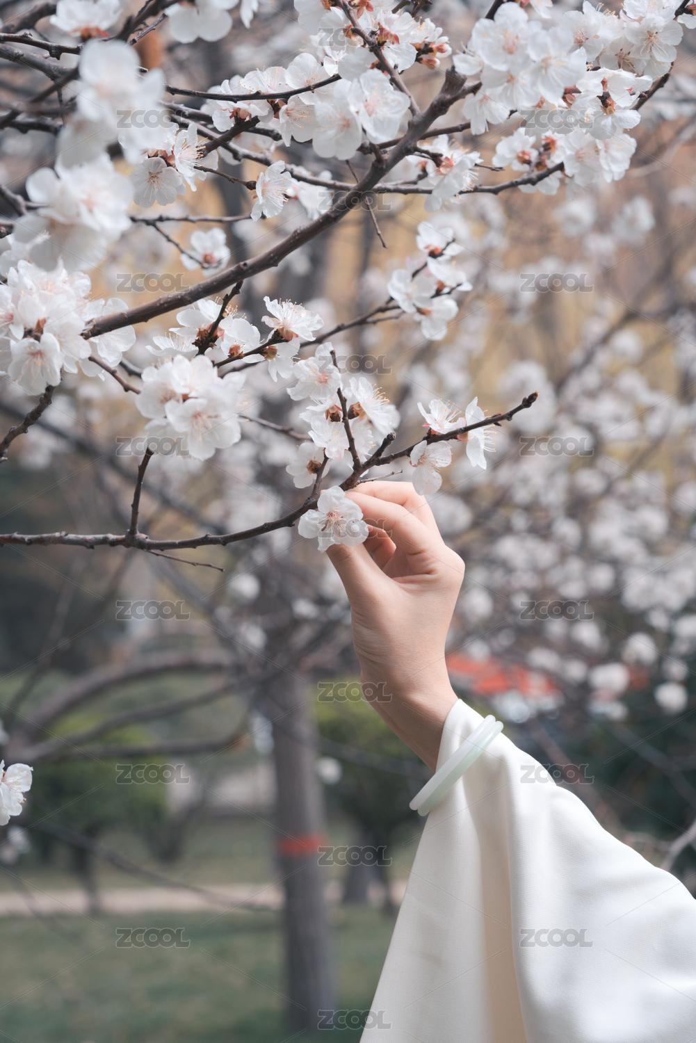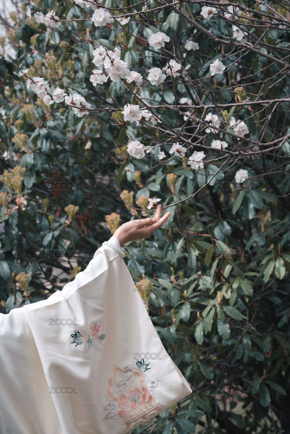 七夕古裝美女手拿著一束玫瑰花在聞花香