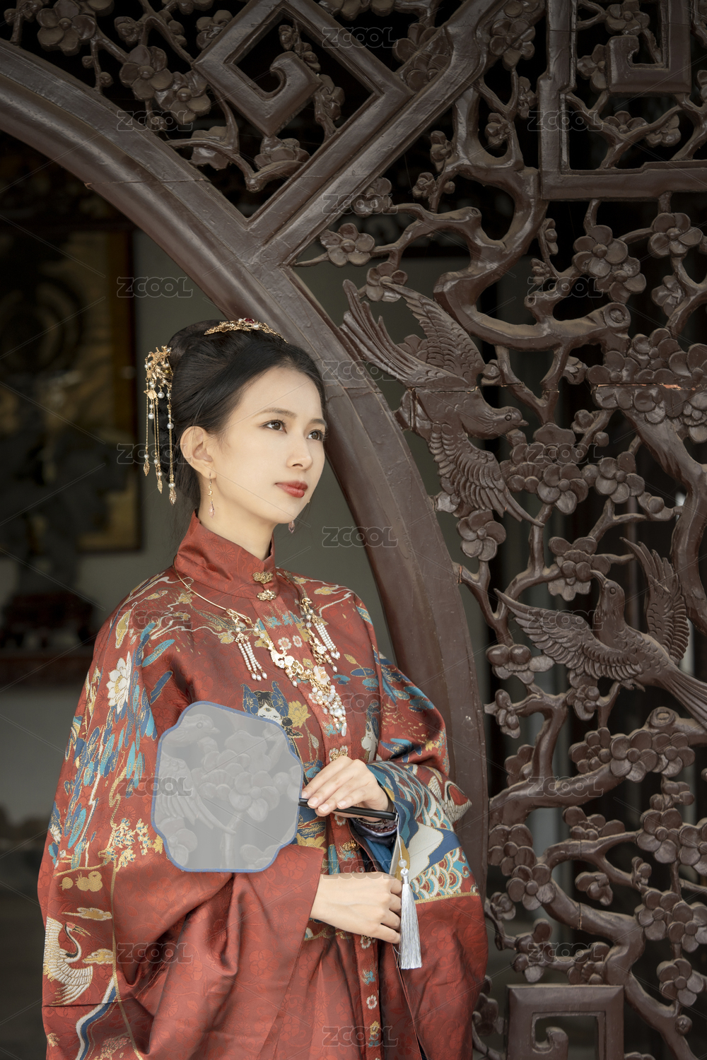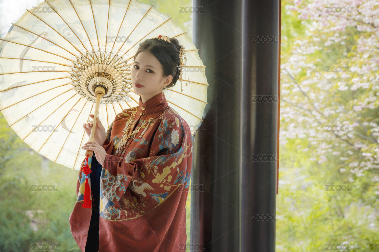 一個(gè)古裝美女在秋季的戶(hù)外回眸轉(zhuǎn)身