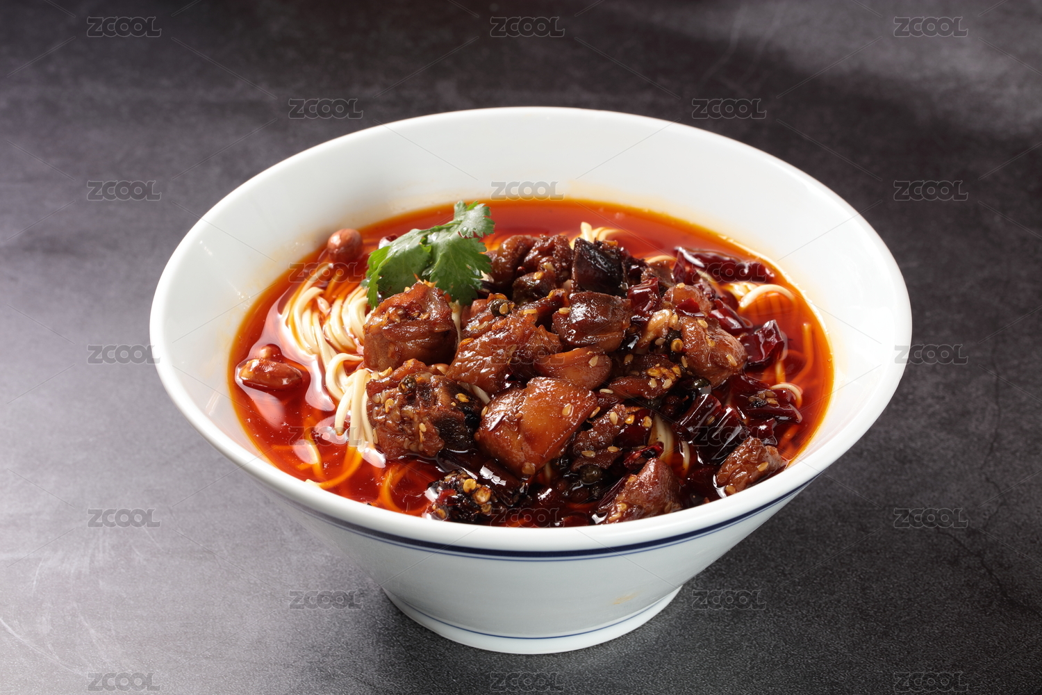 大碗里的麻辣紅湯辣子雞米線面條