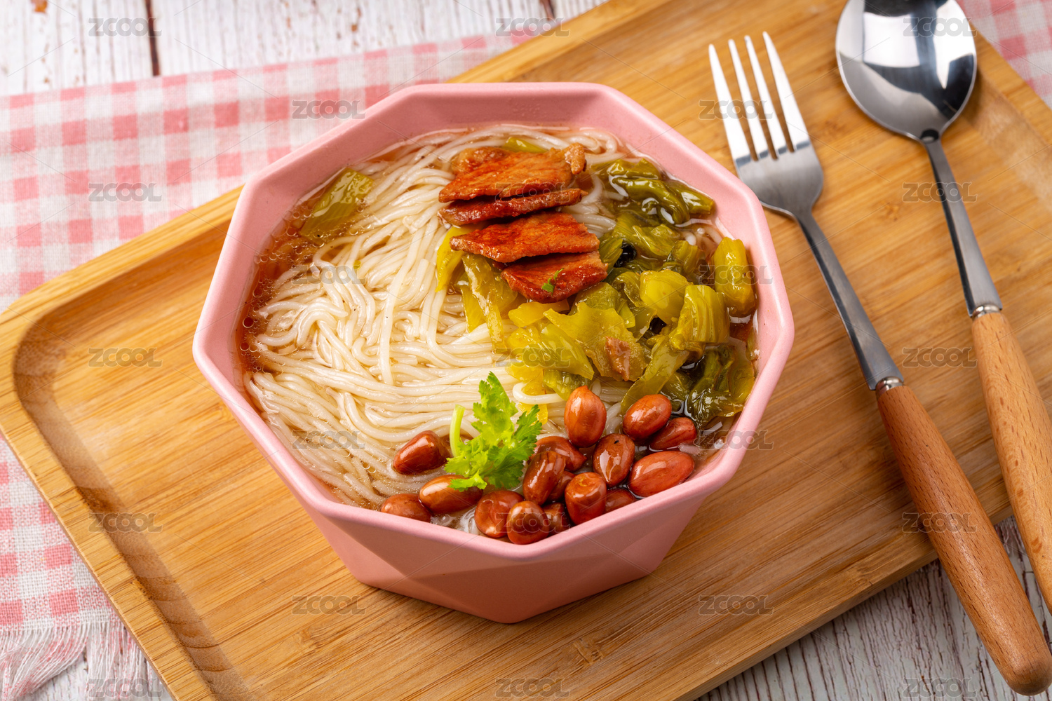 中國特色小吃肉片蔬菜酸辣粉酸辣米線插畫