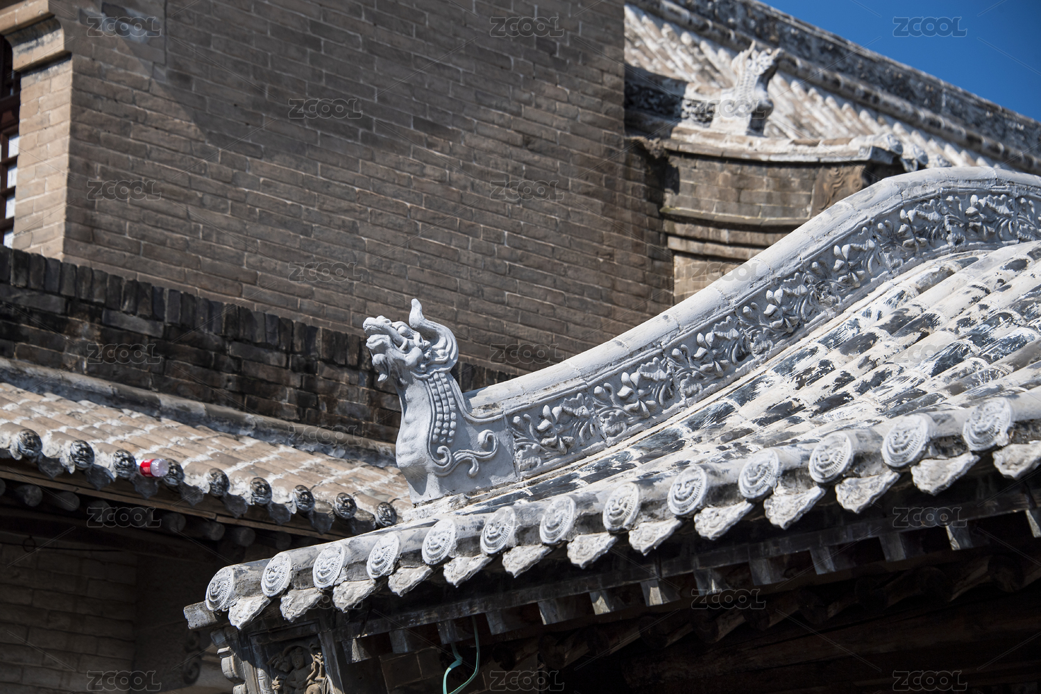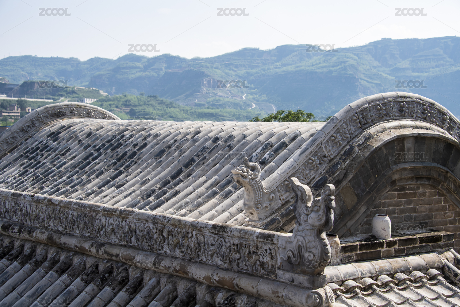 中國山西西灣村北方傳統(tǒng)民居瓦房屋頂