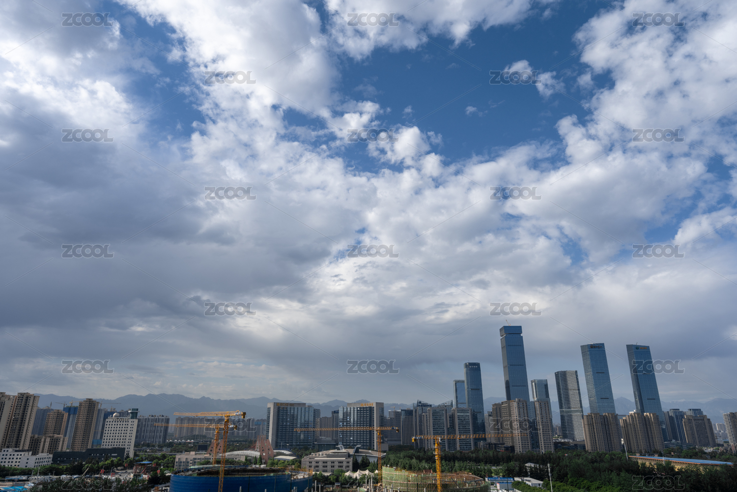 夏天多云天氣下的西安高新區(qū)錦業(yè)路CBD摩