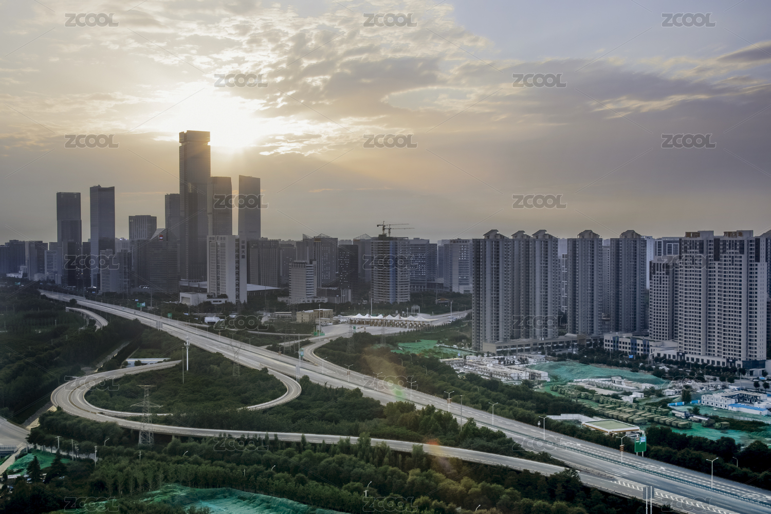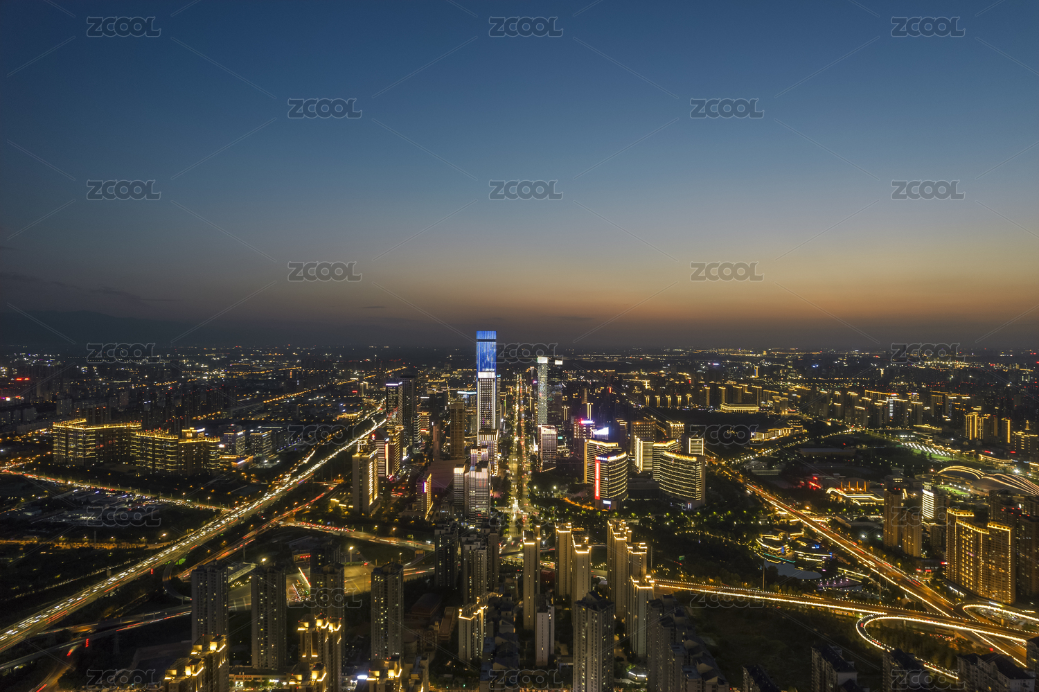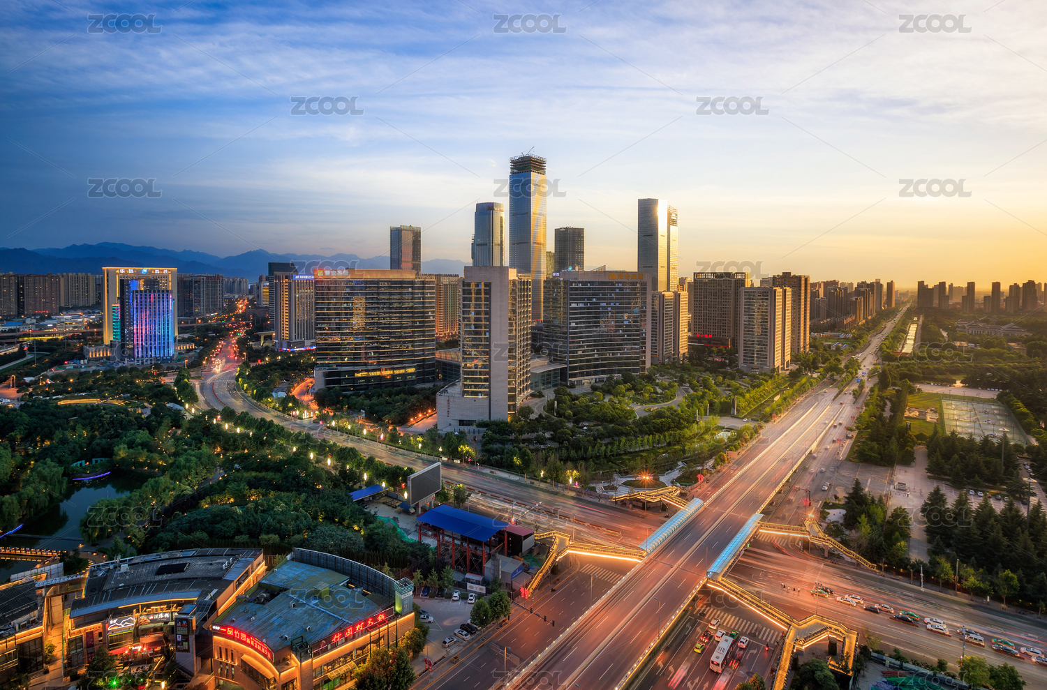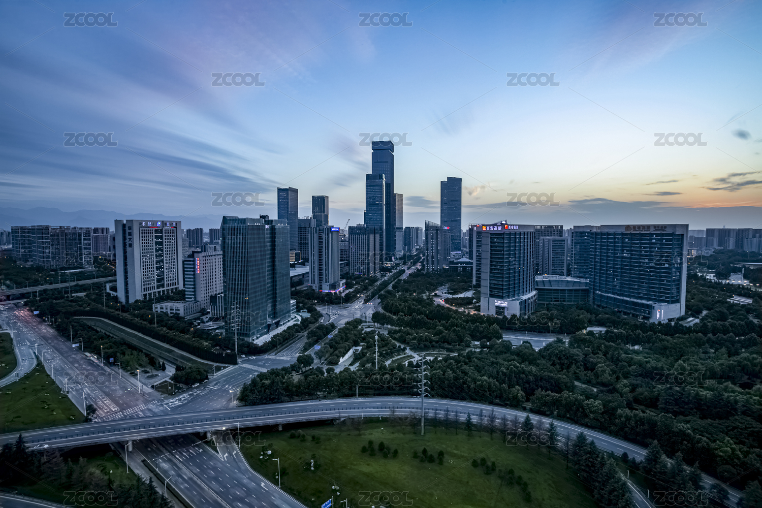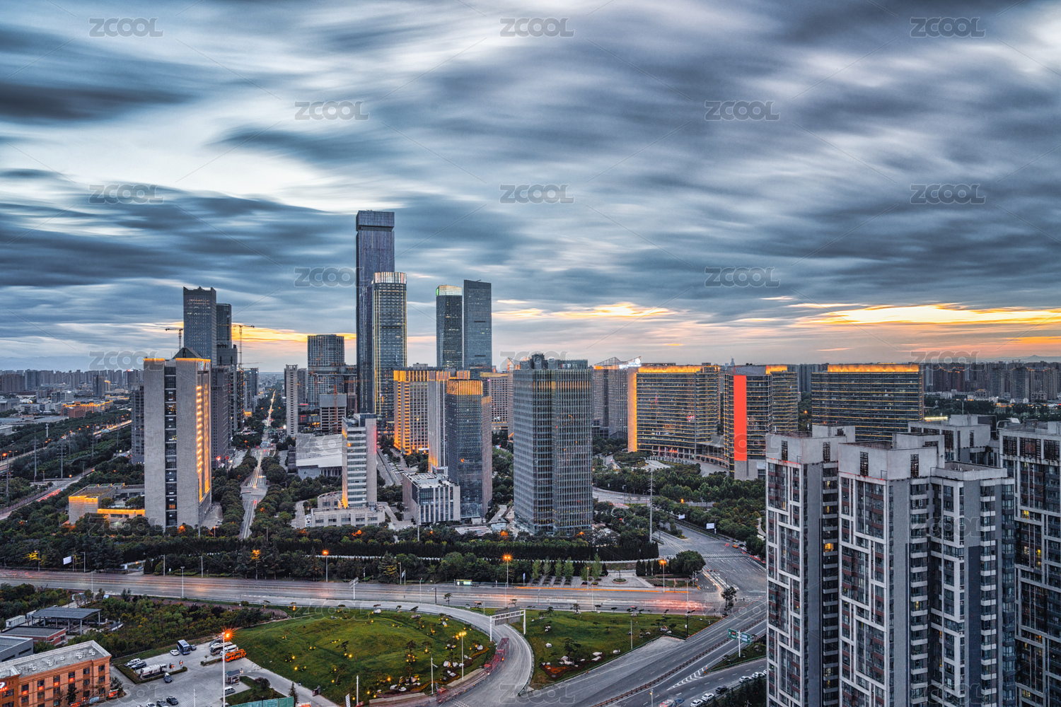 傍晚中國陜西省西安高新區(qū)錦業(yè)路CBD