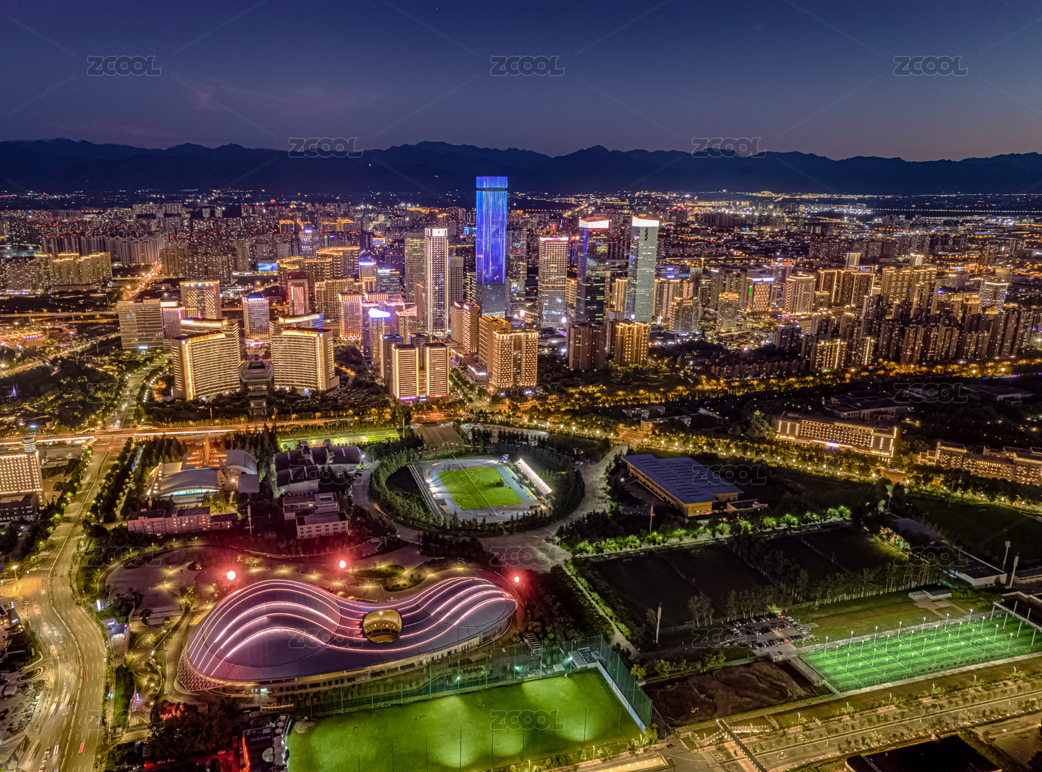 中國陜西西安省體育訓練中心錦業(yè)路CBD夜景航拍