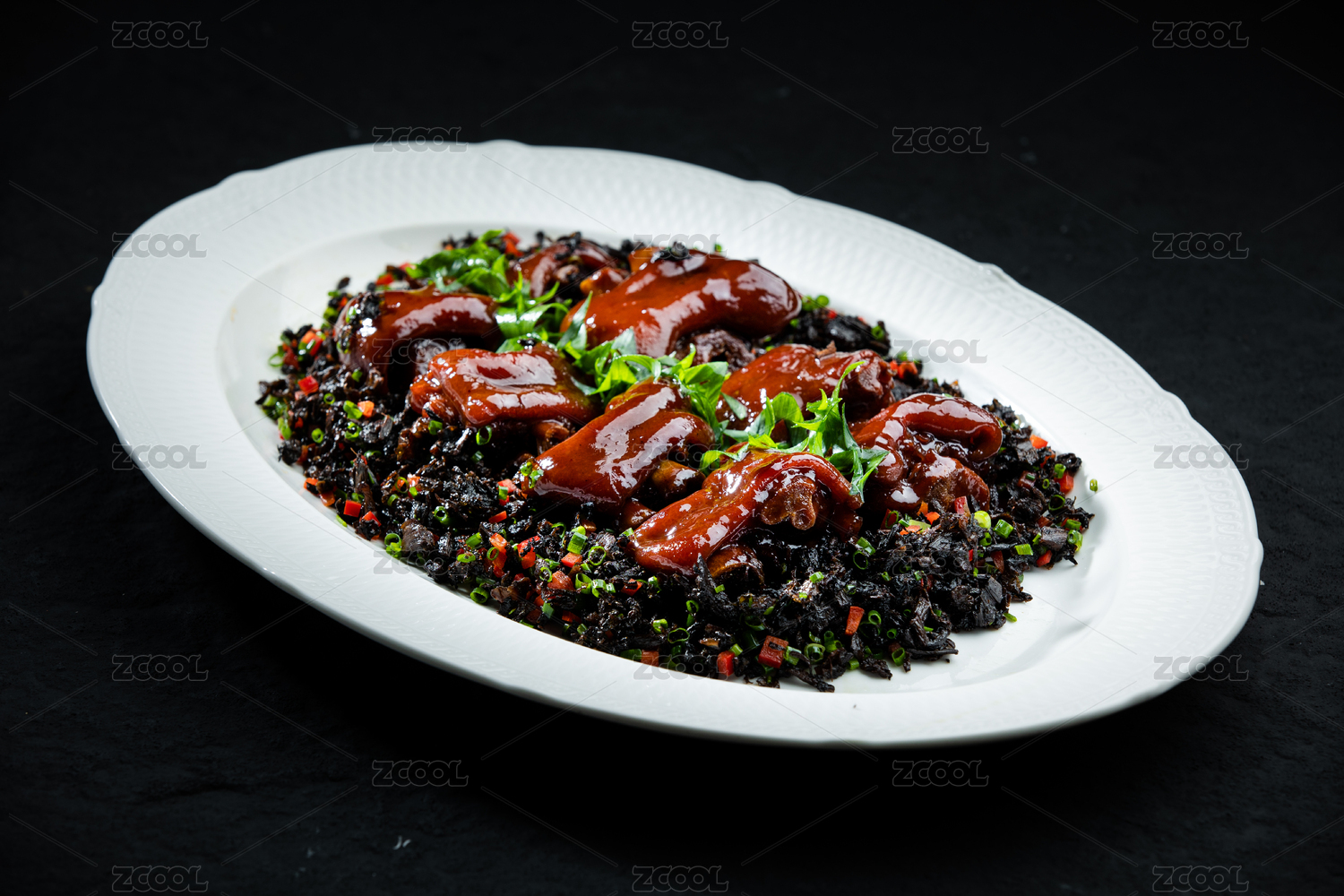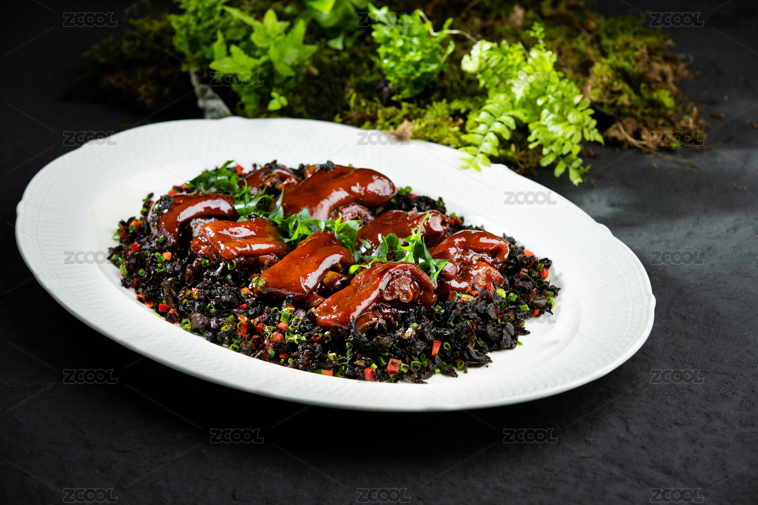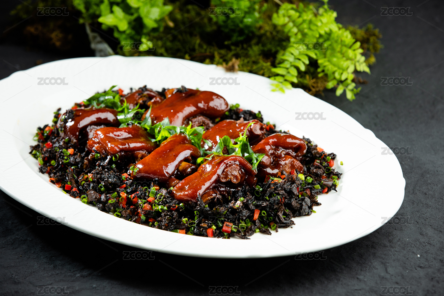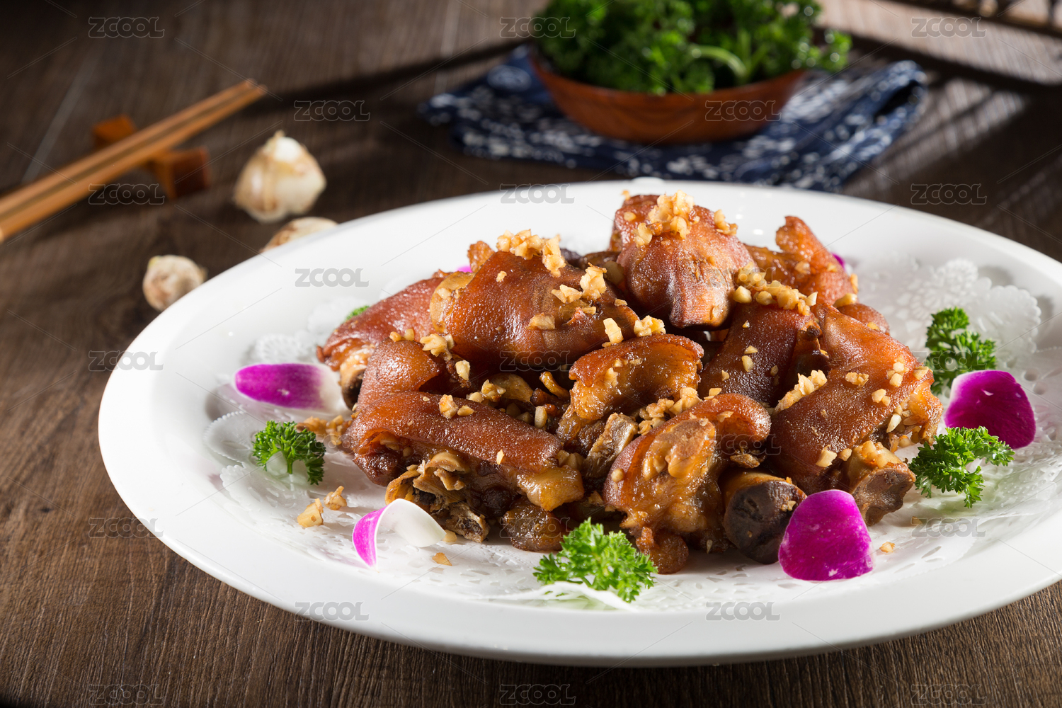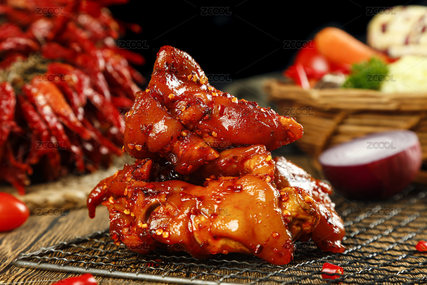 木底上放著一盤(pán)香辣鹵豬蹄