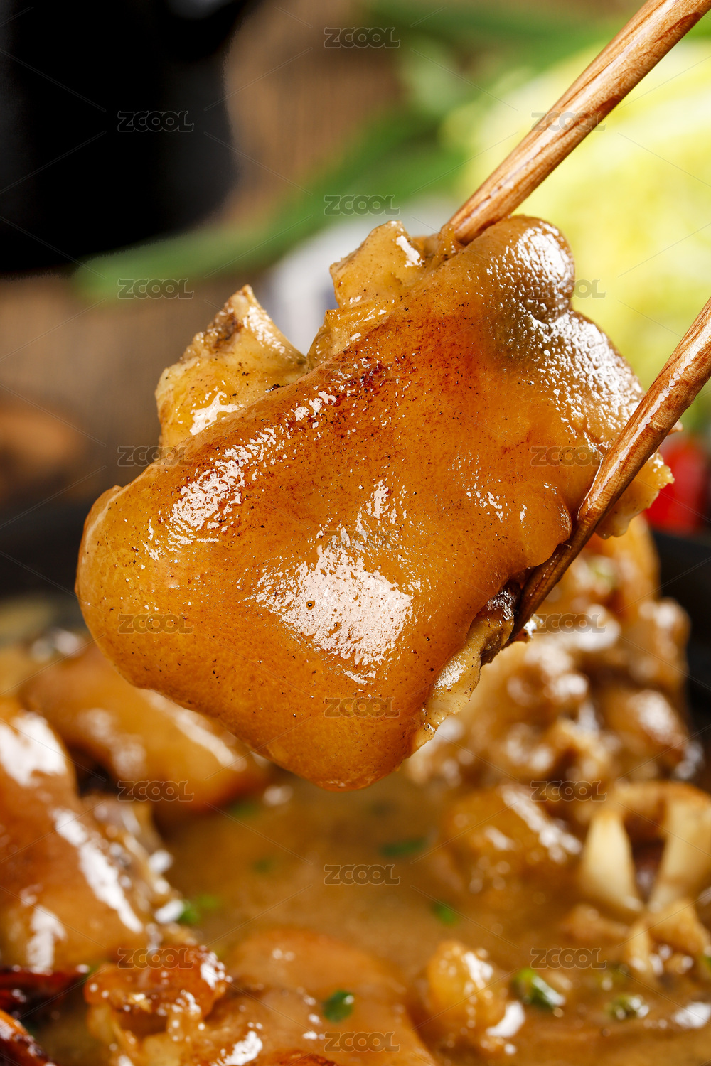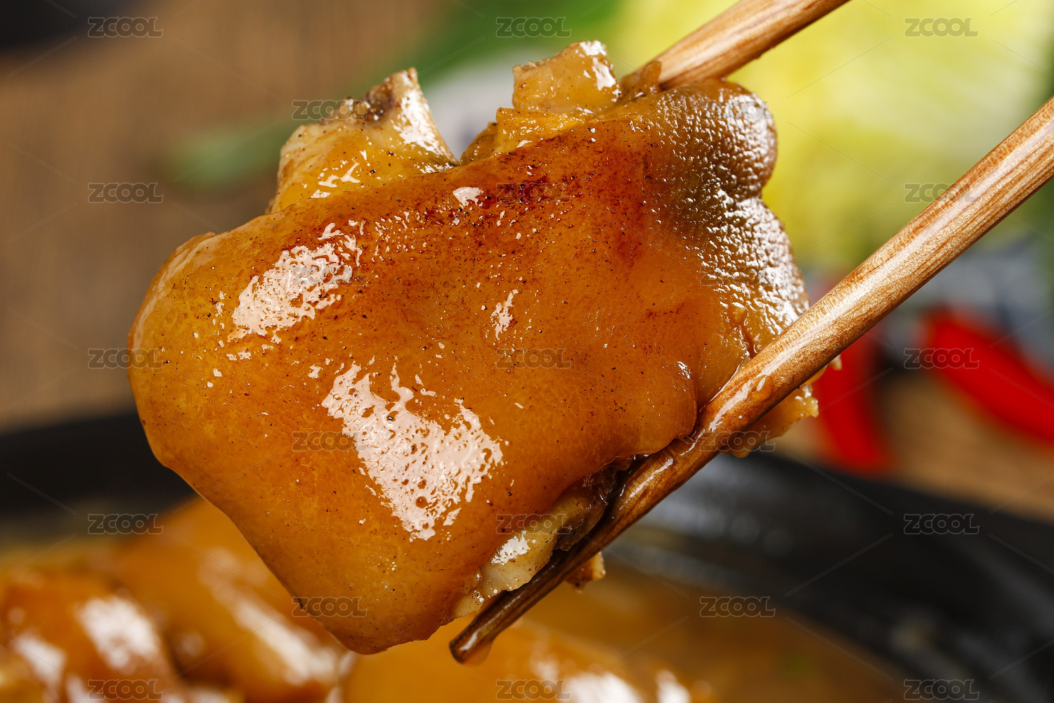筷子上夾著一塊豬蹄