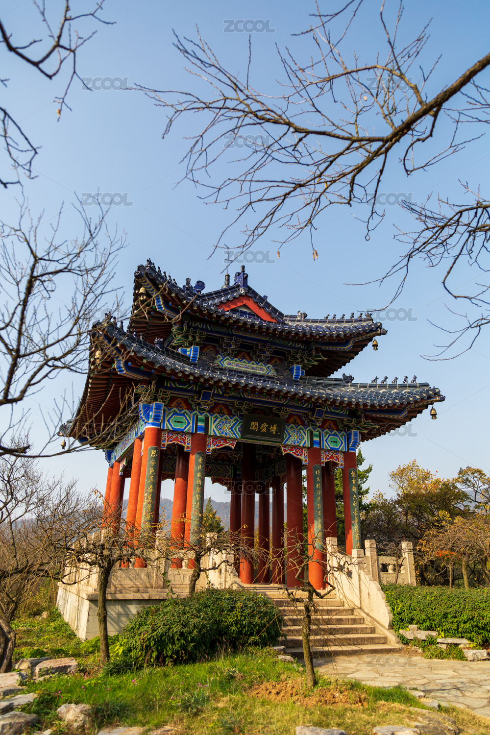 中國江蘇省南京市梅花山景區(qū)博愛閣園林建筑