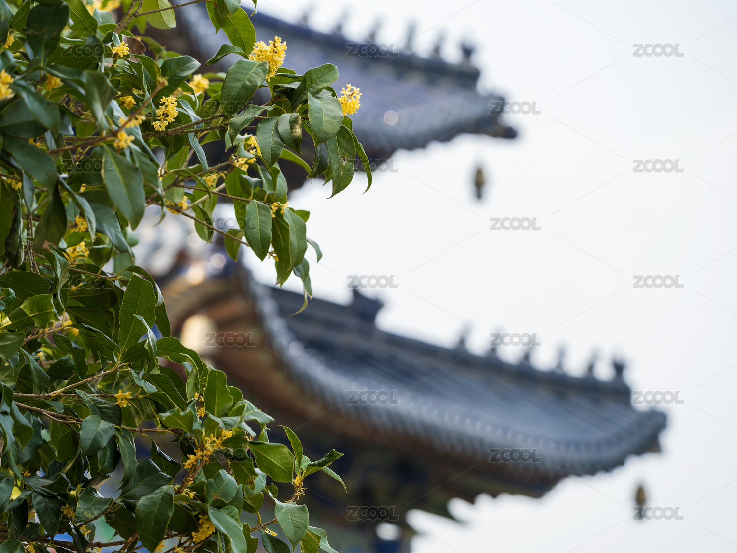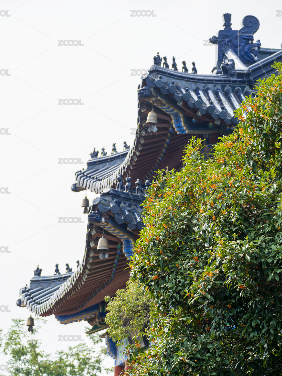 明孝陵博愛閣中式古建筑與桂花