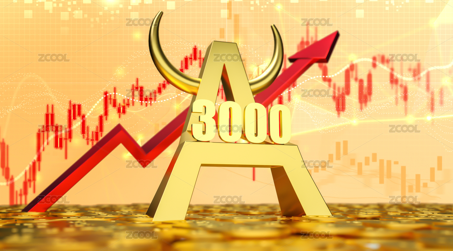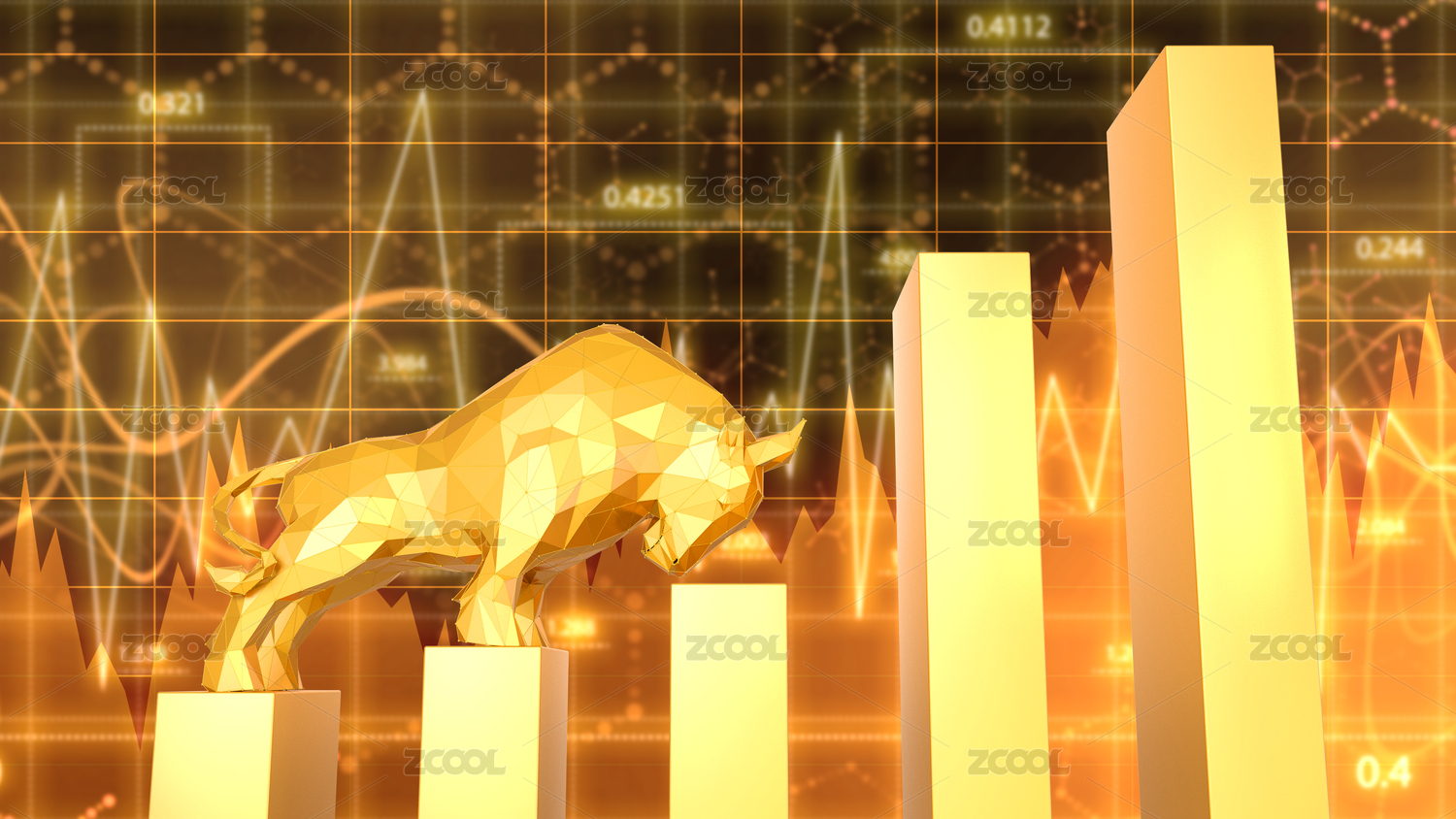 3D立體紅色背景金牛和數(shù)據(jù)漲幅圖組合