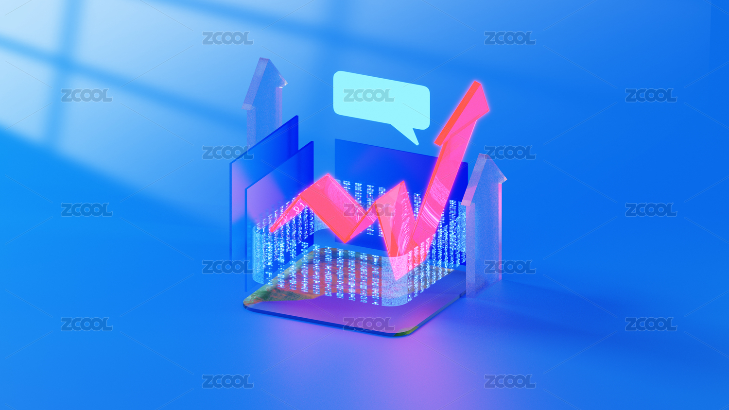 3D立體藍色數(shù)據(jù)股市漲幅素材圖