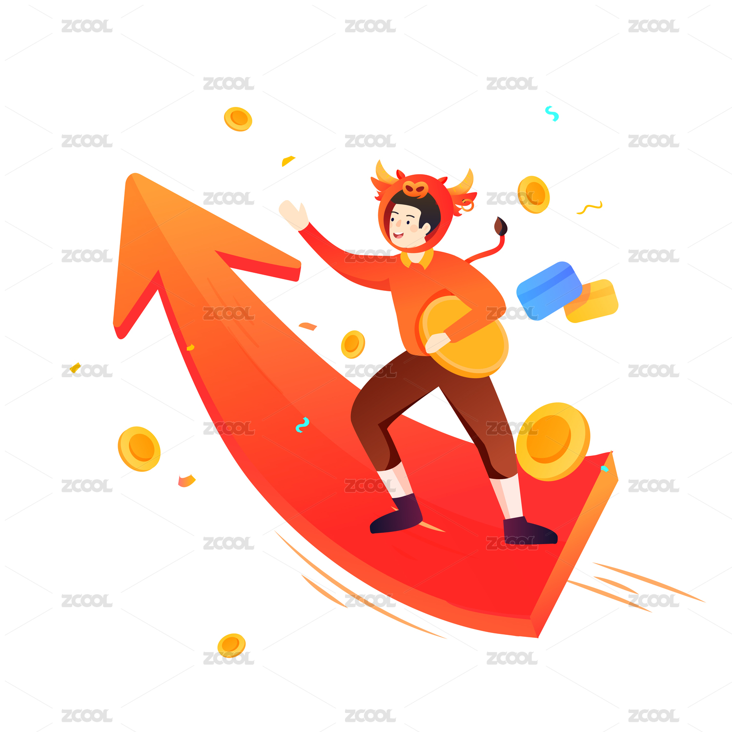 3D立體金牛和箭頭漲幅圖素材組合