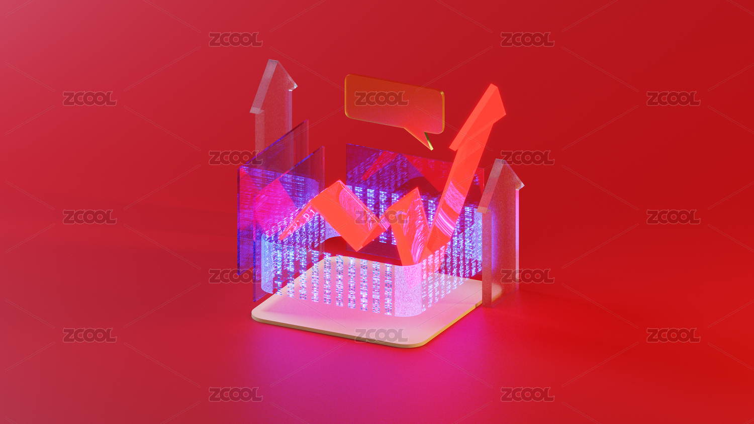 3D立體紅色數(shù)據(jù)股市漲幅素材圖