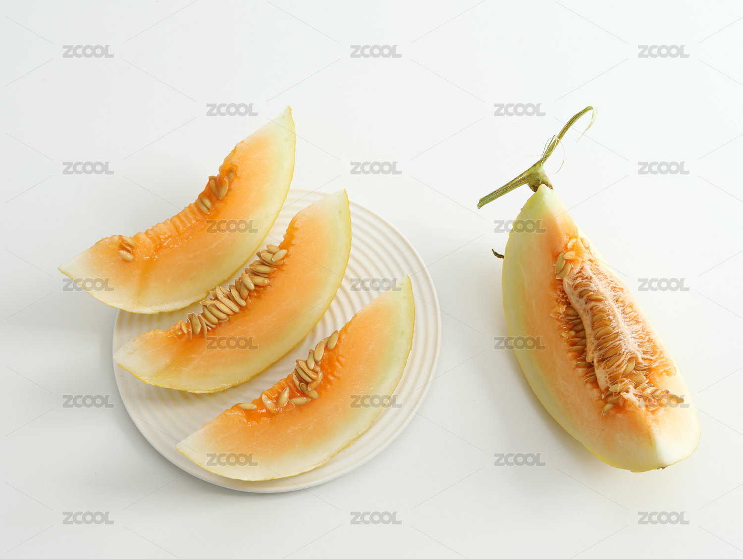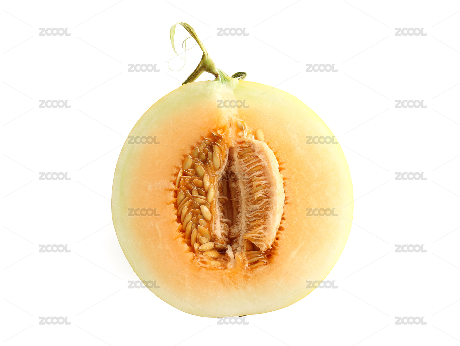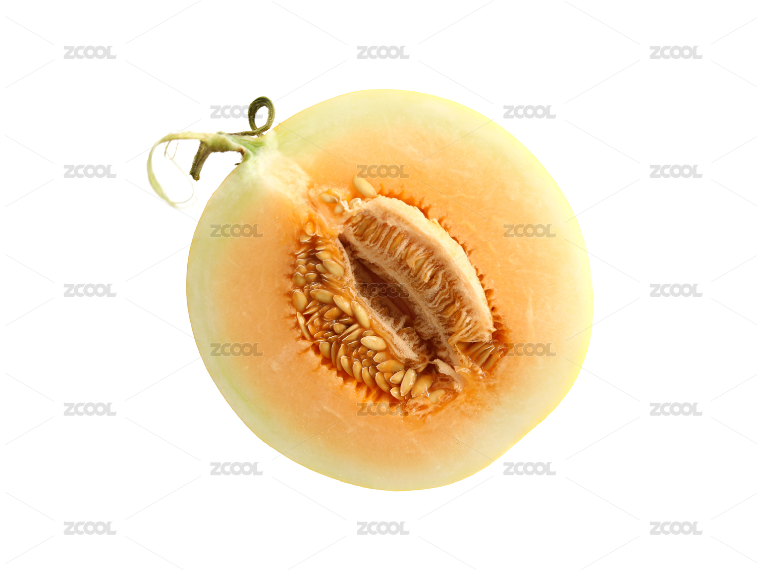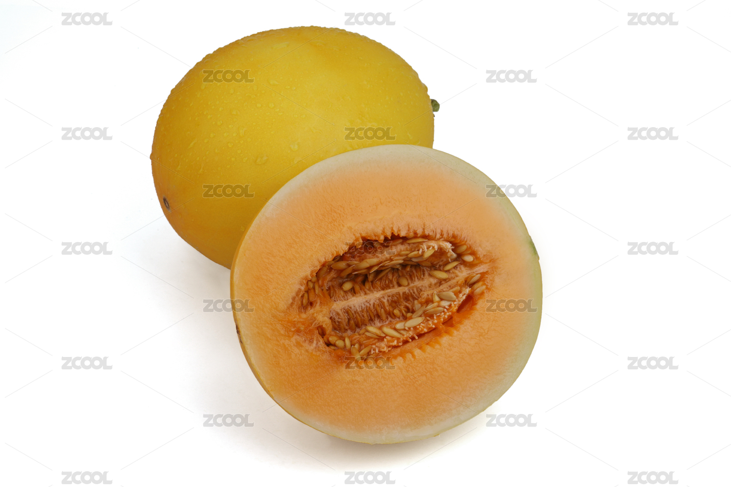 半個(gè)切開(kāi)的新鮮水果民勤沙漠蜜瓜的白底圖