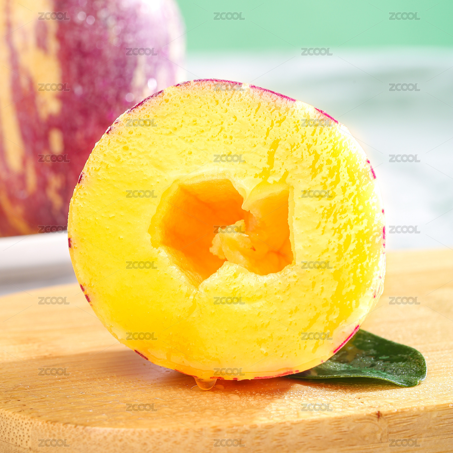 白色桌面上擺放著切開(kāi)的新鮮水果民勤蜜瓜