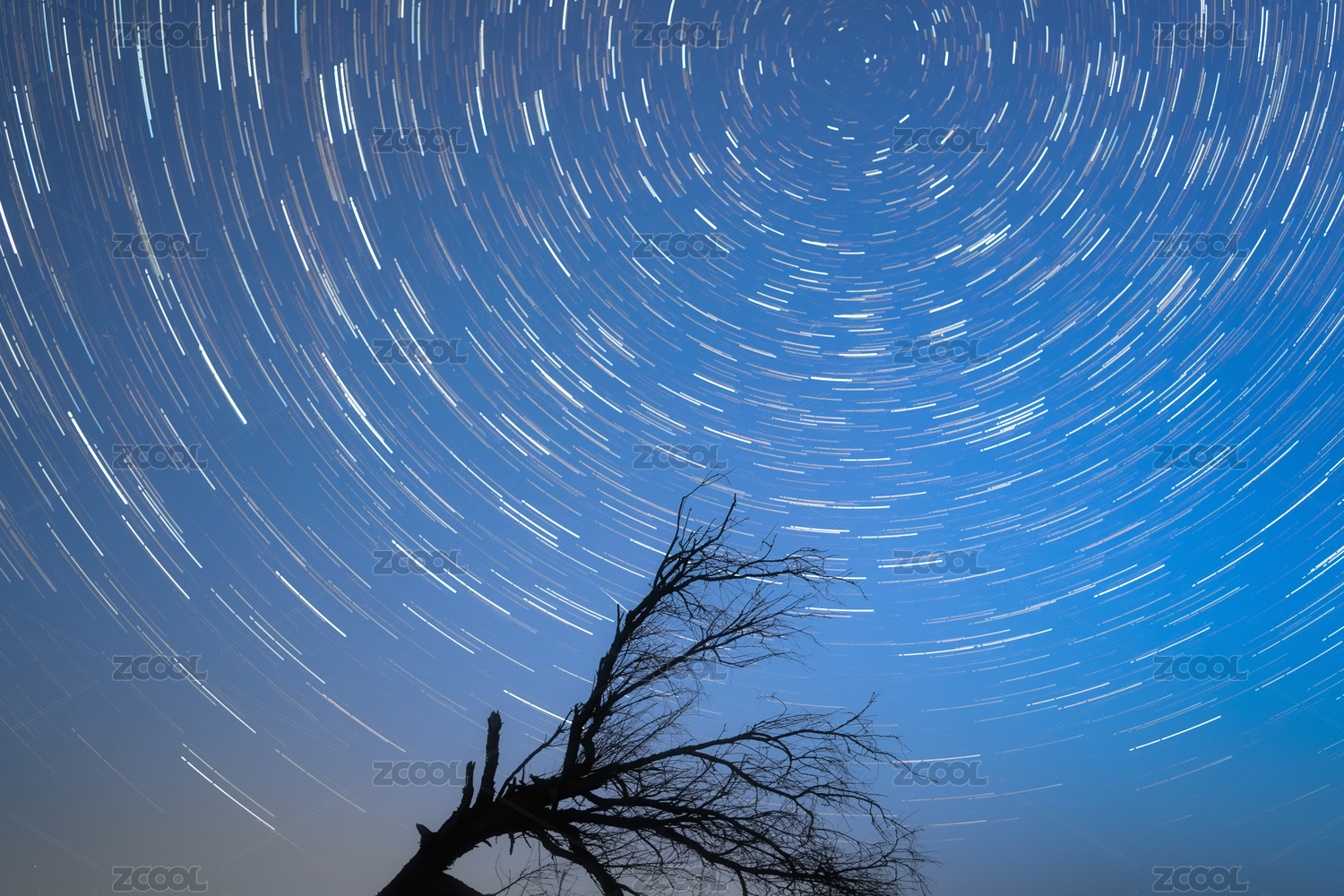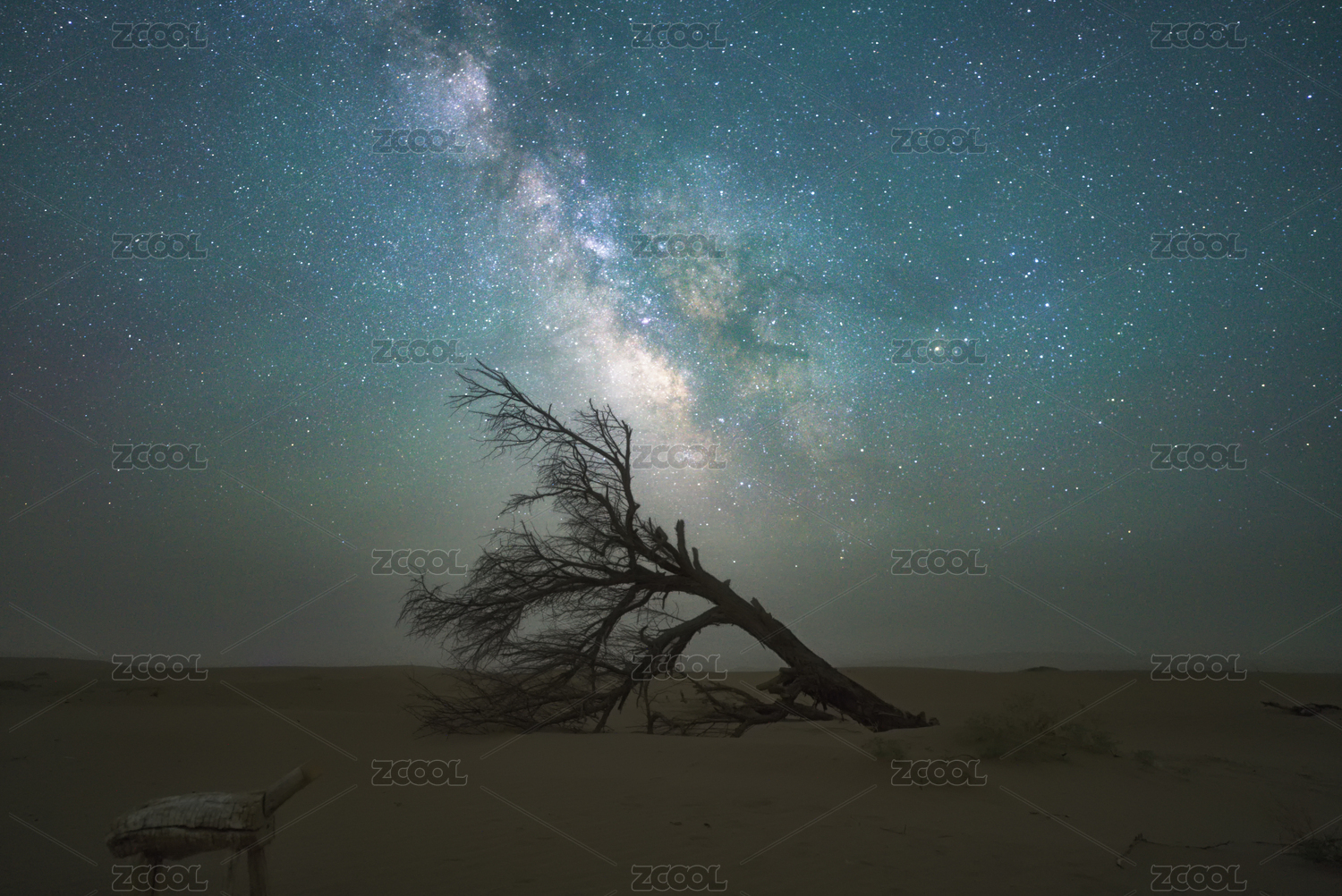 民勤沙漠里星軌下的胡楊