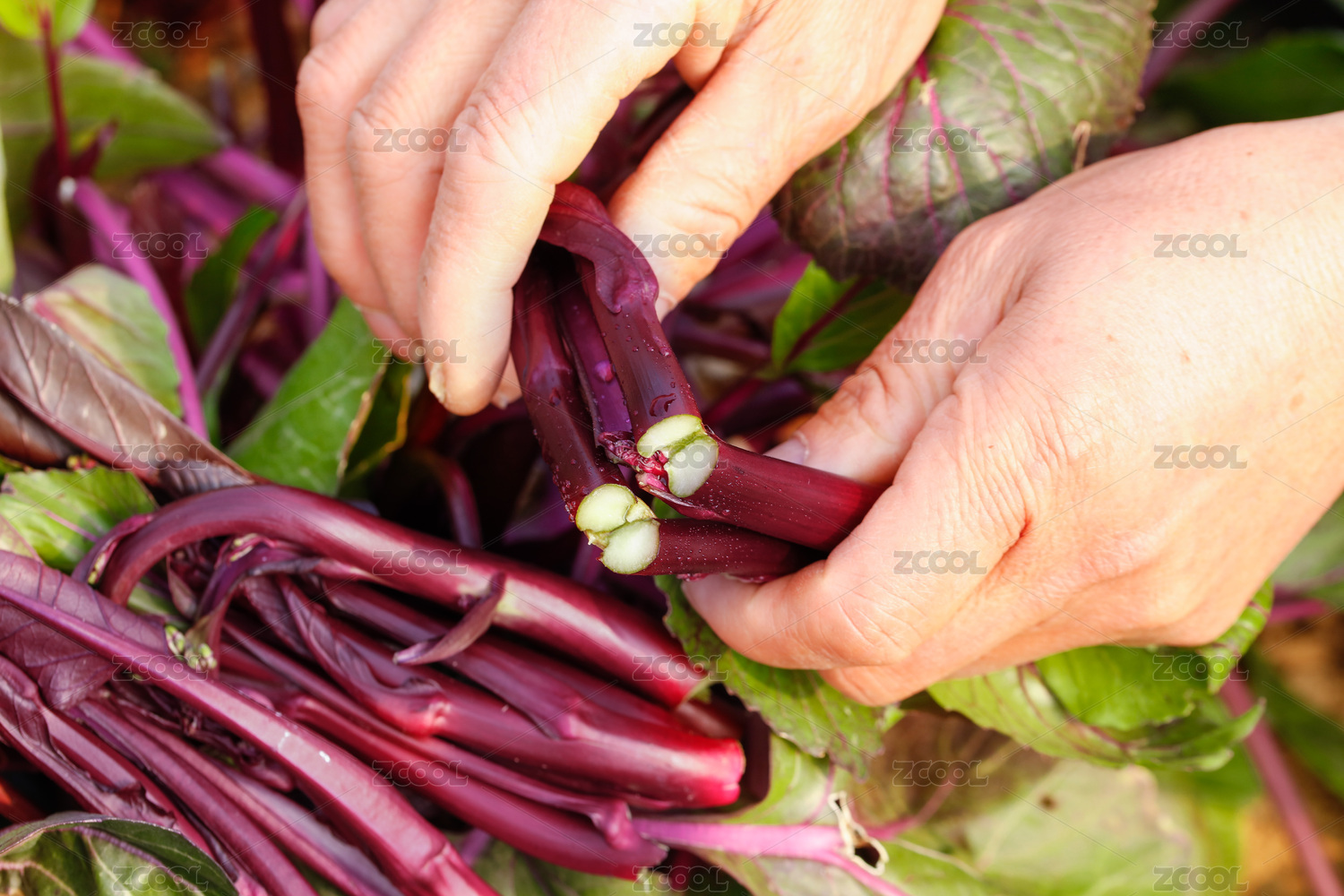 手里拿著紅菜苔