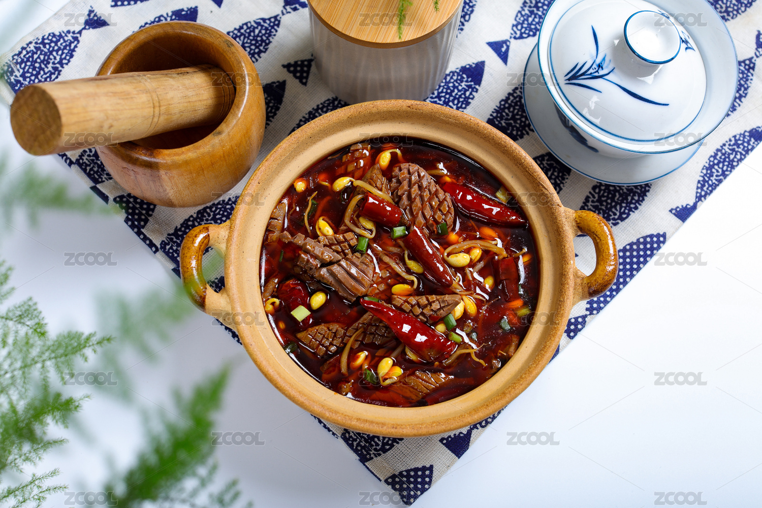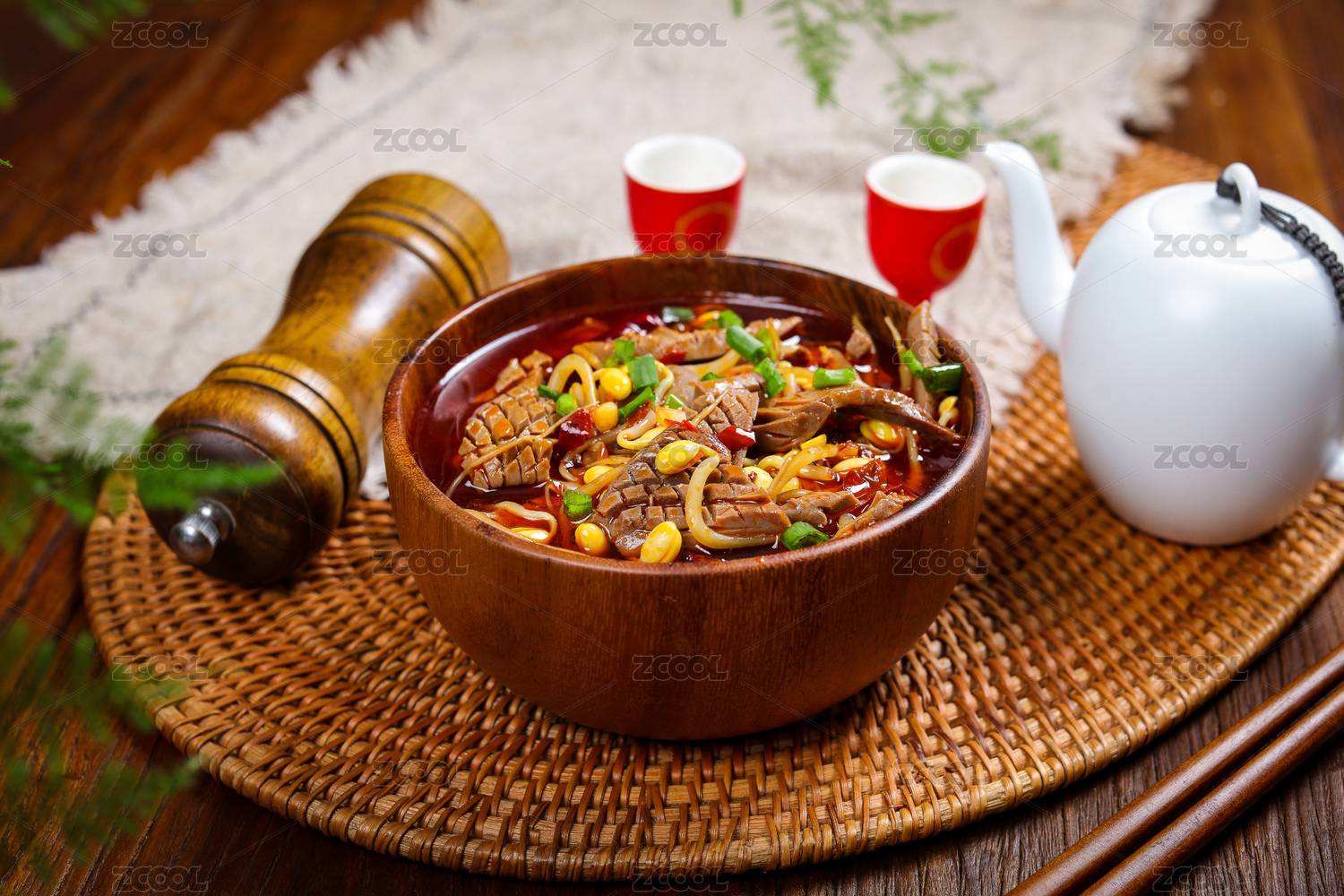 玻璃碗筷子夾著的重慶老火鍋菜品檸檬豬腰花