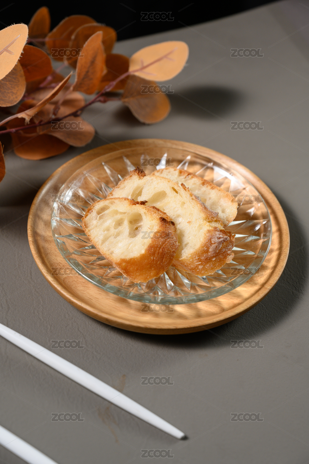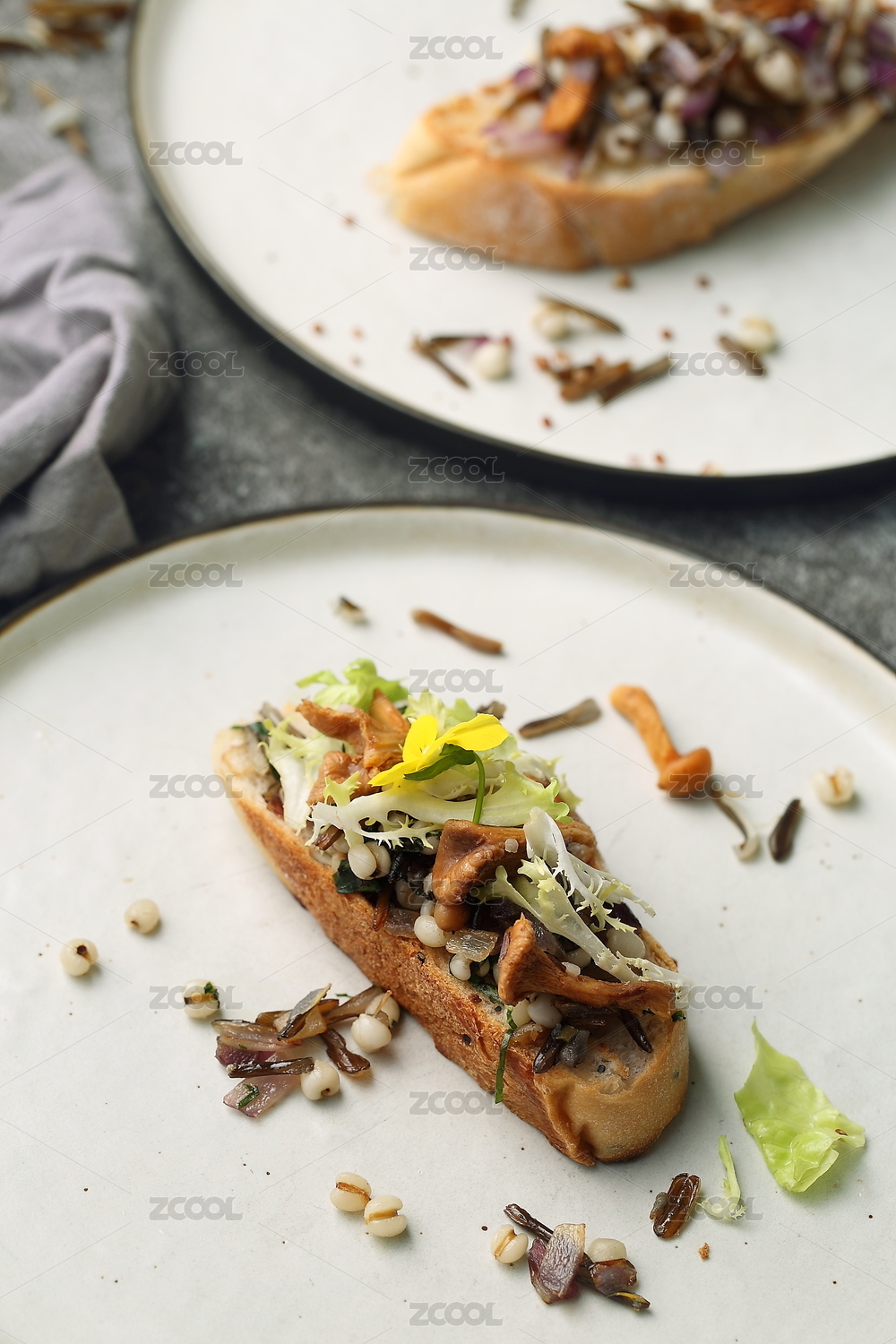 圓盤上的法式料理脆面包片上加蔬菜沙拉