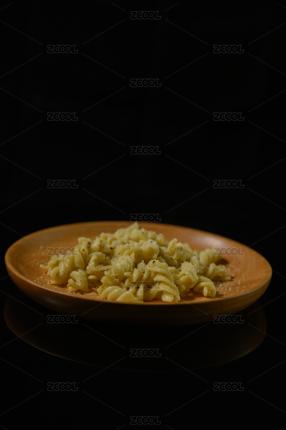 桌面上的盤子里的美味可口的青醬螺絲粉