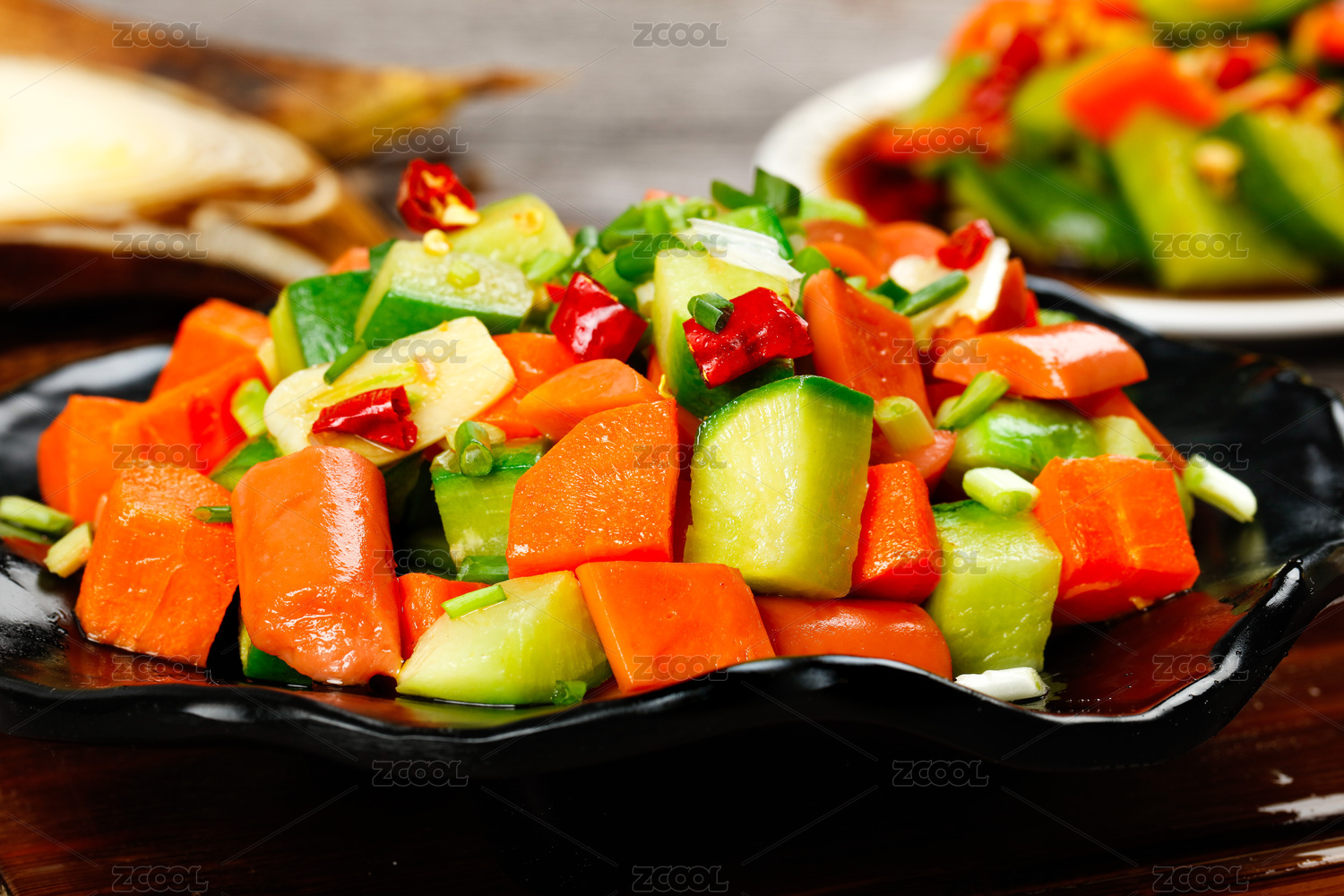 黑底上放著一盤炒蘿卜