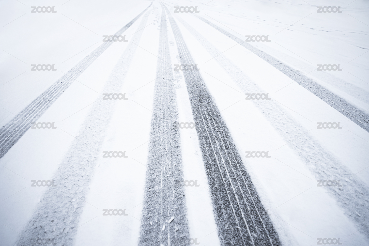 冬天雪地上的輪胎印